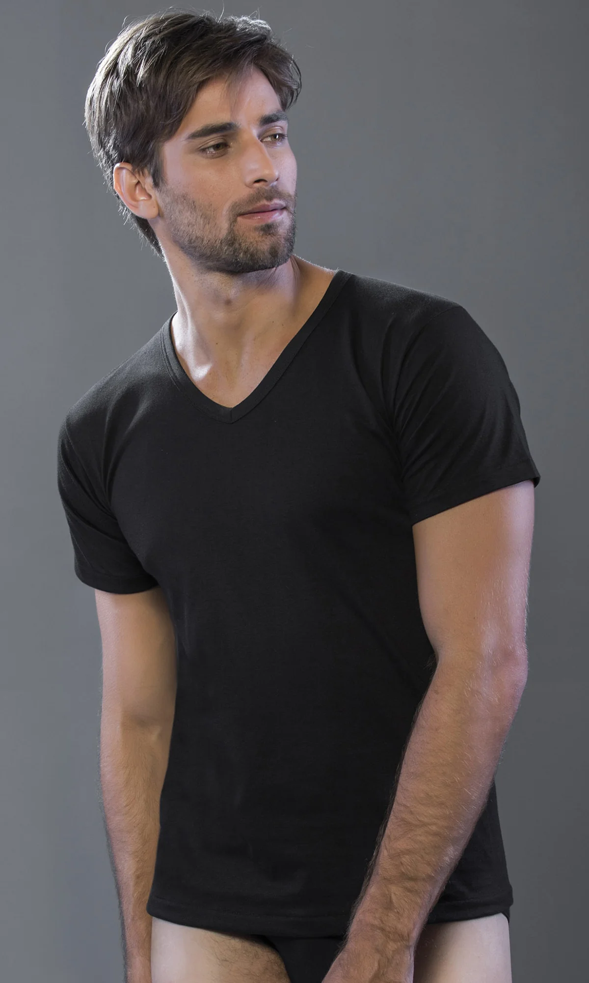 Maglietta mezza manica con scollo profondo a V formata al 100% di cotone, piรน leggera e traspirante grazie alla elaborata lavorazione del cotone, si adatta perfettamente alle forme del tuo corpo. perfetta da utilizzare nel periodo estivo e primaverile. Presenti in vari colori.