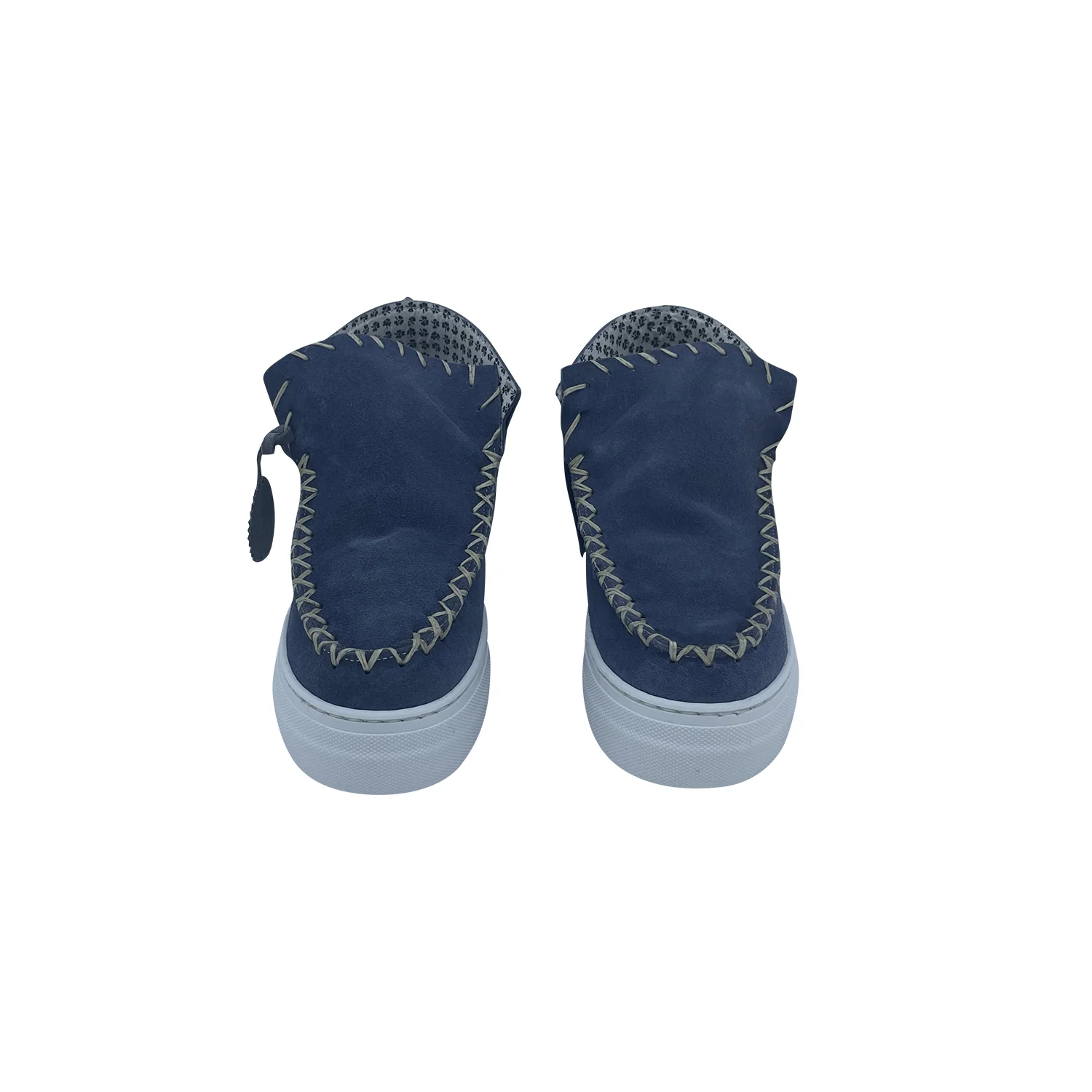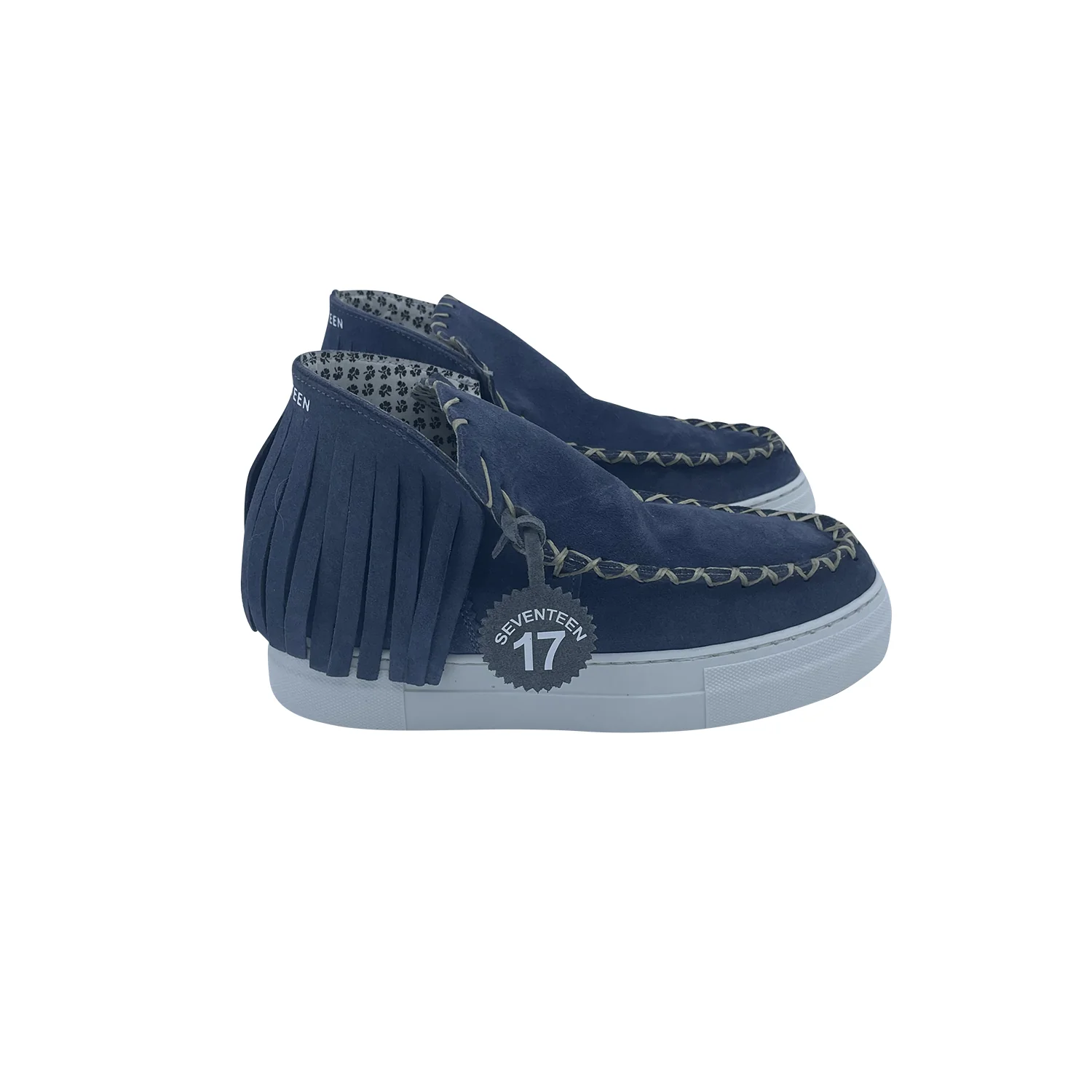 Stivaletto 17 seventeen Colore: camoscio jeans Frangia jeans Cuciture a x con filo cerato, cucite a mano Fondo bianco alto 3.5cm
