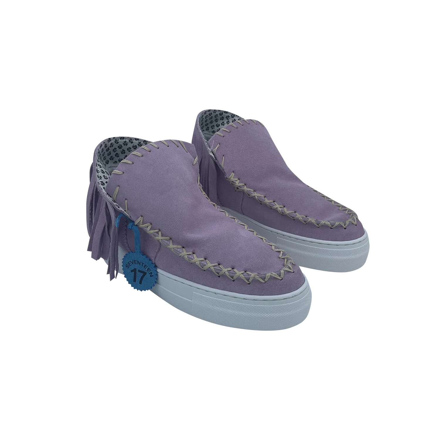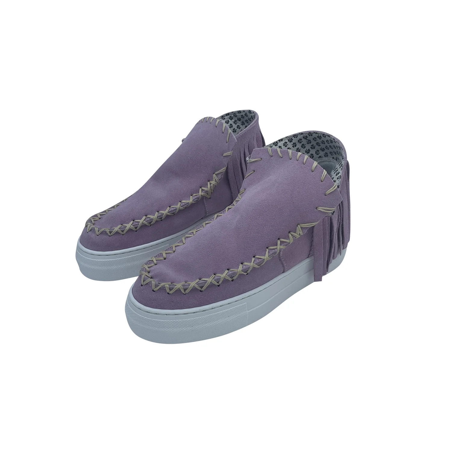 Stivaletto 17 seventeen Colore: camoscio rosa Frangia rosa Cuciture a x con filo cerato, cucite a mano Fondo bianco alto 3.5cm