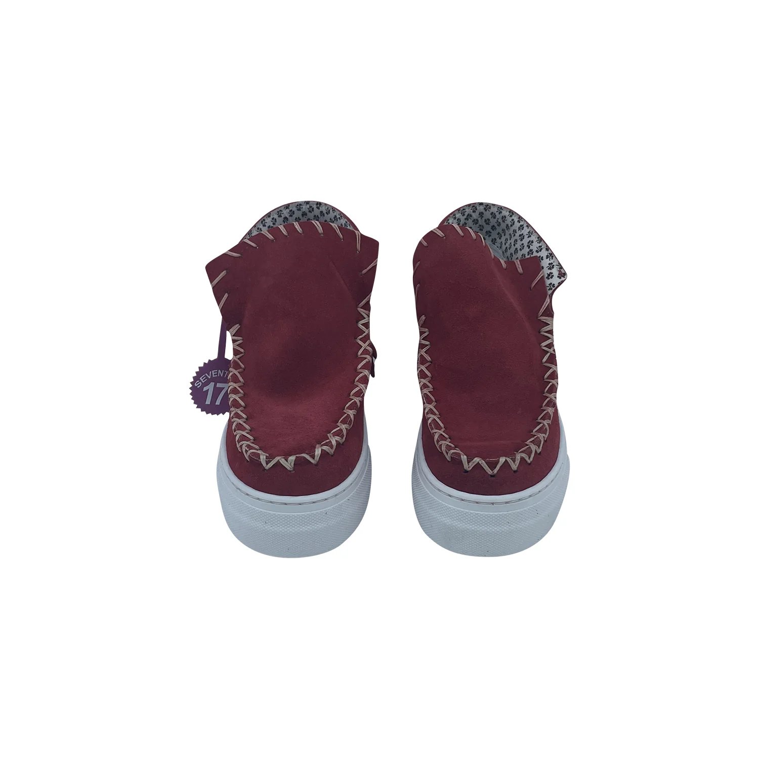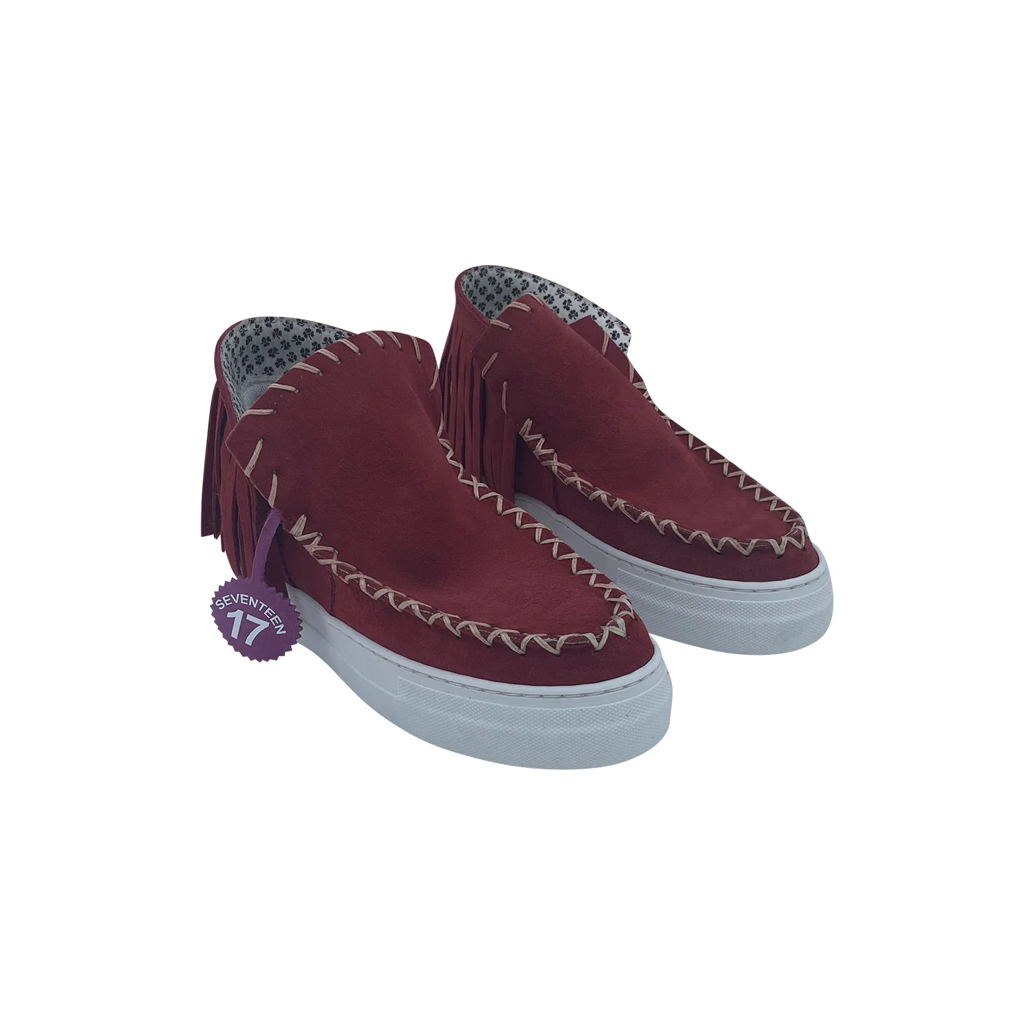 Stivaletto 17 seventeen Colore: camoscio rosso Frangia rosso Cuciture a x con filo cerato, cucite a mano Fondo bianco alto 3.5cm
