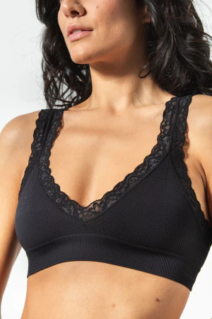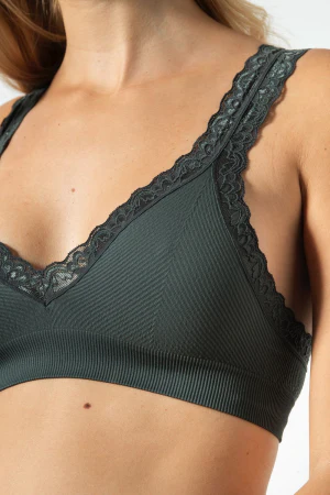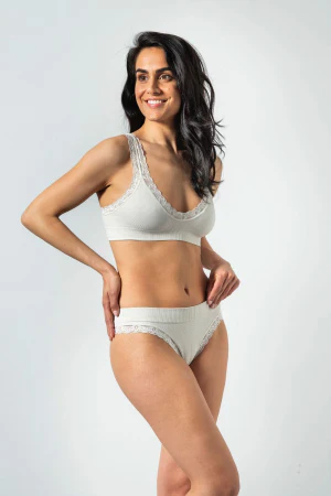 Top in morbida microfibra con lavorazione costina diagonale. Spalla larga e rifiniture in pizzo รจ confortevole e pratico per tutti i giorni.