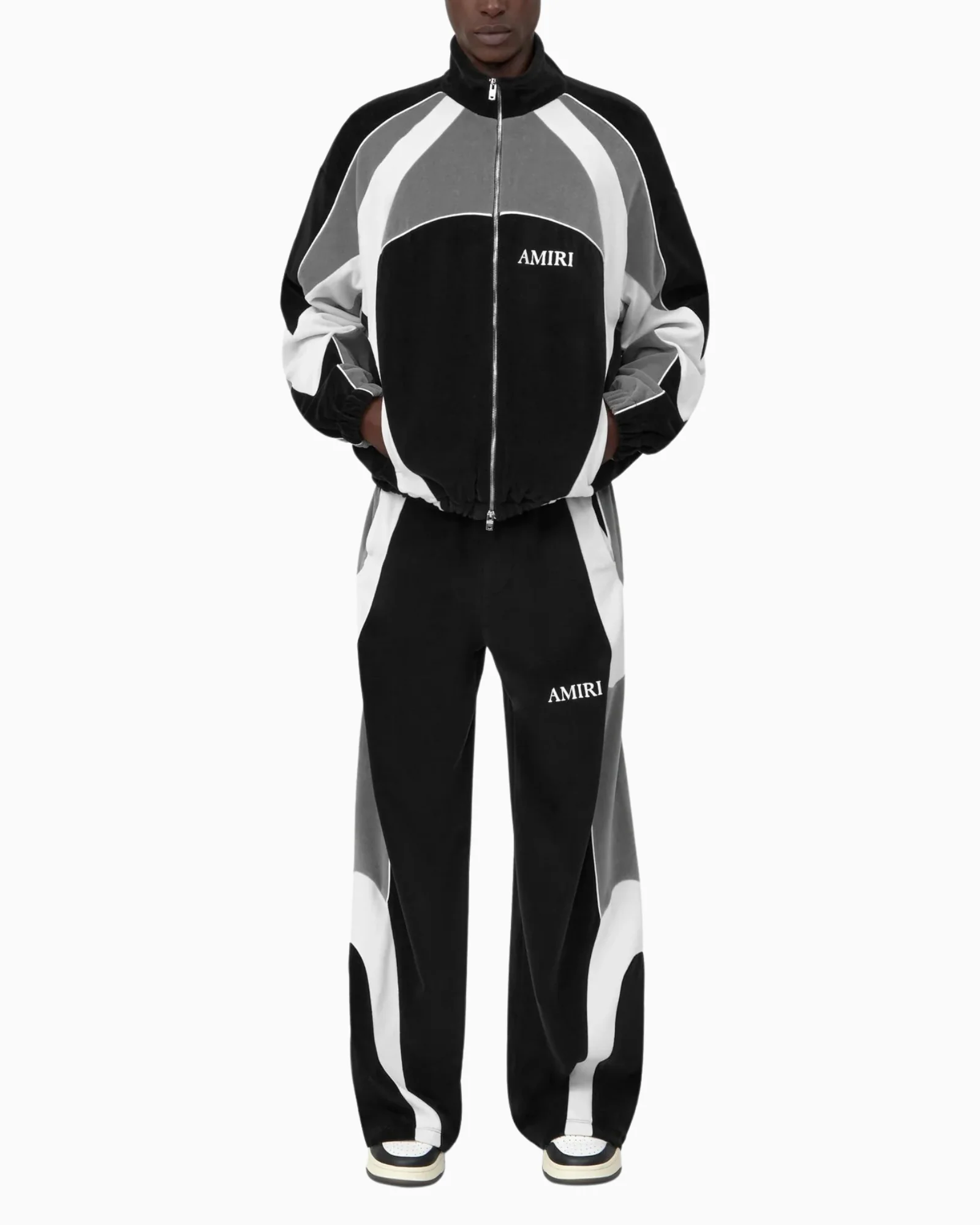 AMIRIgiacca con pannelli color-block Prodotto in Italia Dettaglio prodotto:-nero/bianco/grigio-design a pannelli color-block-chiusura con cerniera frontale-maniche lunghe-dettaglio del logo-collo alto-bordo elasticizzato Composizione: Cotone 100% codice prodotto: AMOUJA1004001