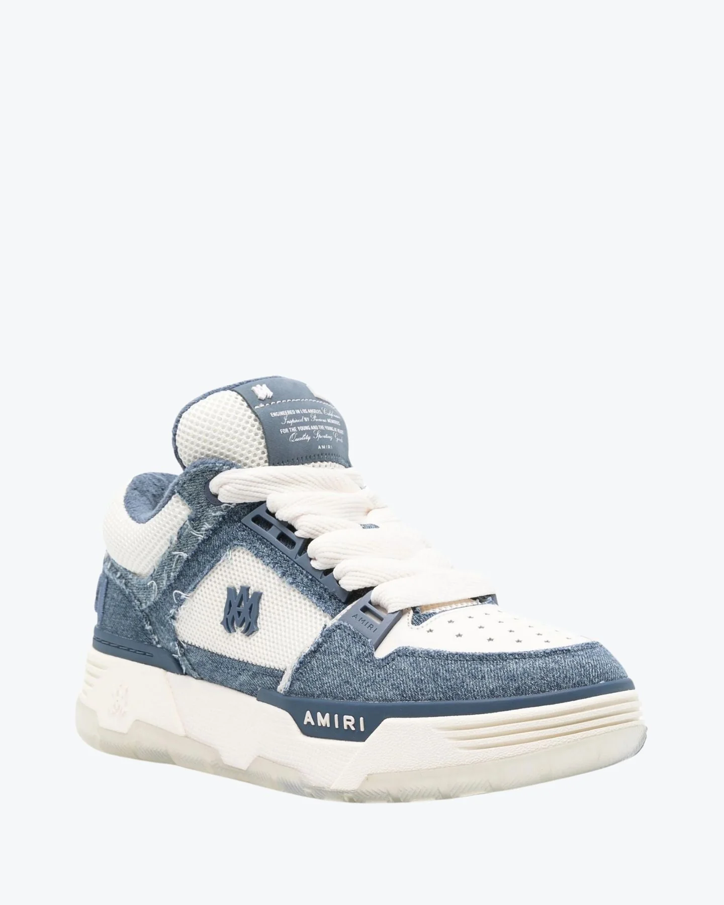 AMIRISneakers MA-1Esterno: tessuto 100%, pelle di vitello 100%Suola: gomma 100%Fodera: tessuto 100%Caratteristicheblu/biancodesign a insertipelle di vitellodenimdettaglio in retepunta smussatadettaglio con inserti a contrastopunta traforataapplicazione sulla linguetta con logoapplicazione con logologo sul retrosoletta con logosuola in gommachiusura frontale con lacciMADE IN VIETNAMSku: AMFOSR1039