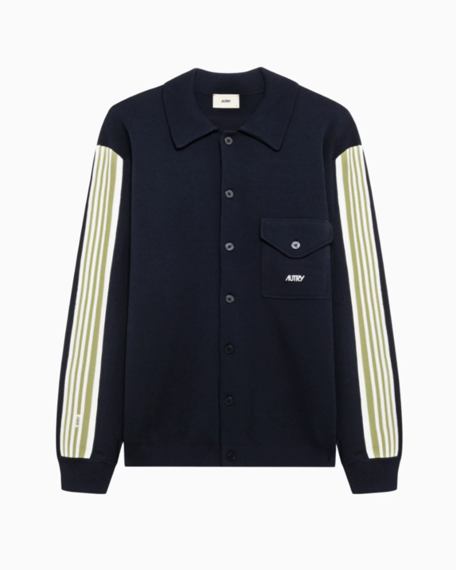 AUTRYCamicia giacca in maglia di viscosa uomo codice prodotto: JAPM/026B DETTAGLI:65% viscosa – 35% nylonGiacca camicia con bottoniBanda laterale a righe a contrastoRicamo logo AutryRegular fit