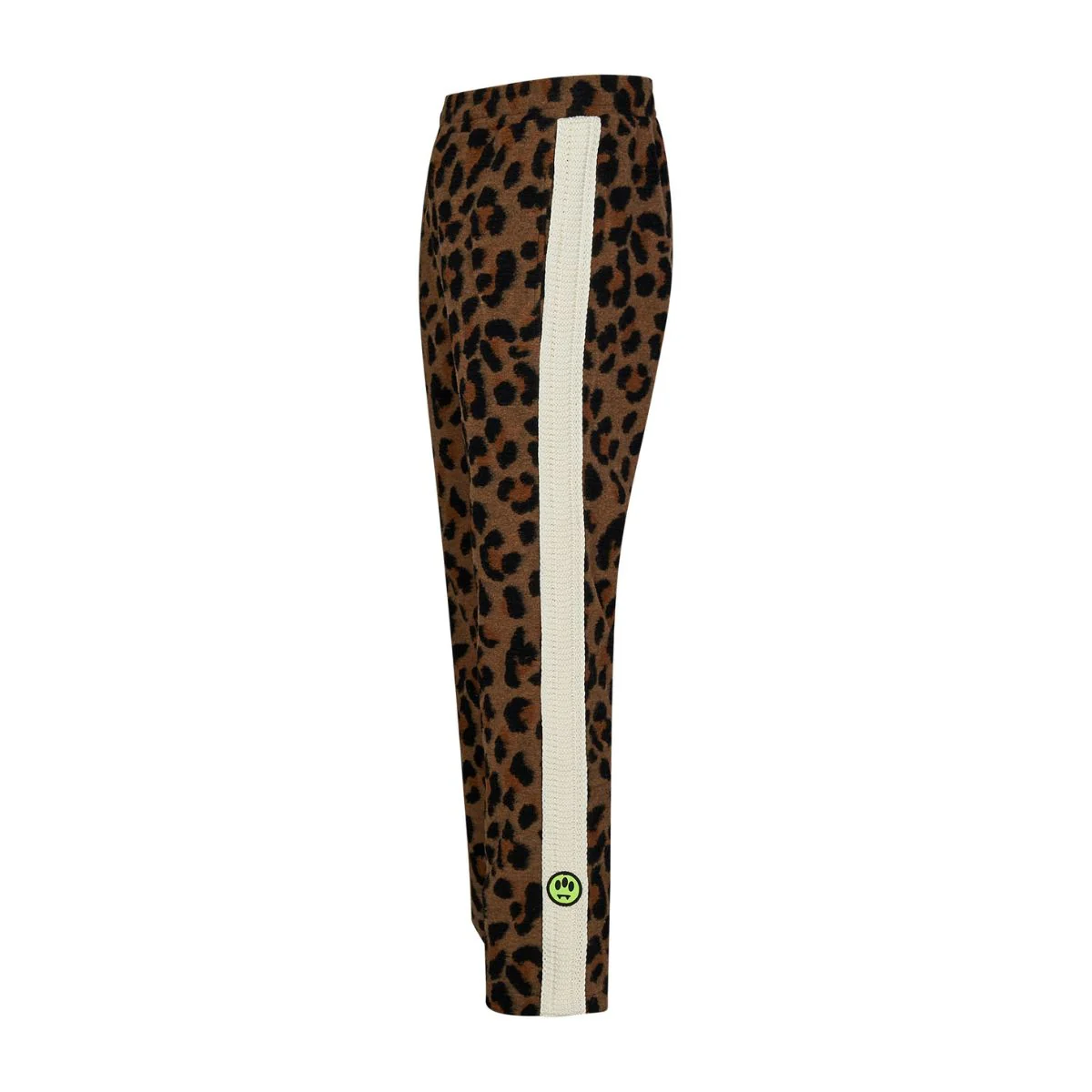 BARROWPantaloni unisex in misto lana marrone leopardato con bande laterali crochet e logo smile.Vita con coulisse interna Tasche laterali Bande laterali all’uncinetto bianco panna con logo smile sul fondo Targhetta reflective cucita sul lato Motivo leopardato all-over Fit unisex Colore: marrone 80% Poliestere, 20% Lana Prodotto in Albania cod. F3BWUAPA051