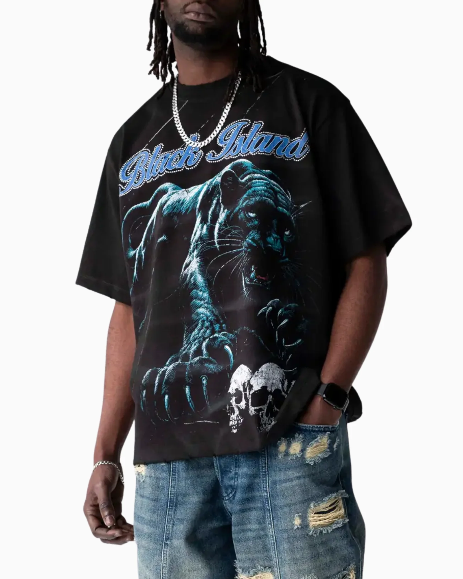 BLACK ISLAND Black Island Panther Graphic Oversized T-Shirtcodice prodotto: 1990/BLACK Descrizione del prodotto:La t-shirt oversize con grafica Black Island Panther sfoggia un audace stile streetwear con un’aggressiva grafica a pantera e un dettaglio grafico a teschio. Progettata per distinguersi, questa maglietta fonde energia pura con un’estetica dark e urbana che definisce l’identità di Black Island. […]