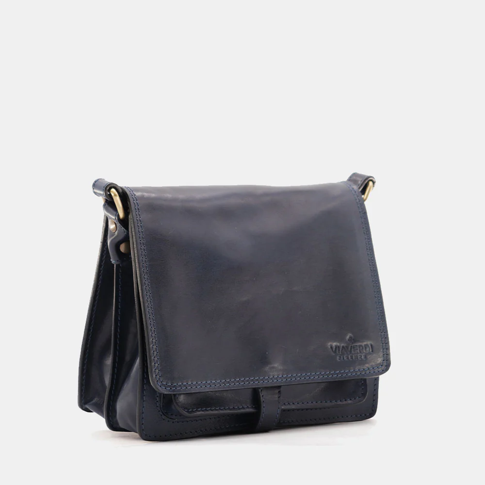 Borsa a Tracolla in Pelle Blu VIAVERDI Made in Italy linea Firenze