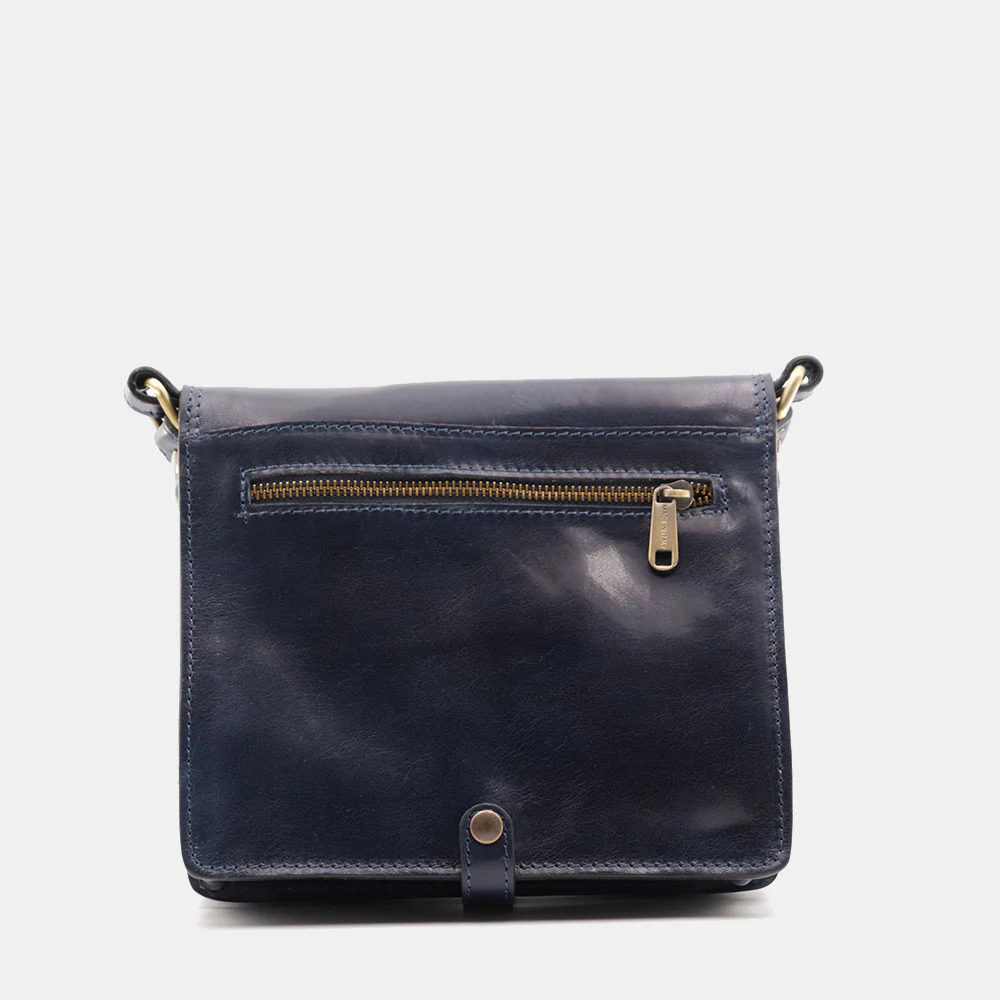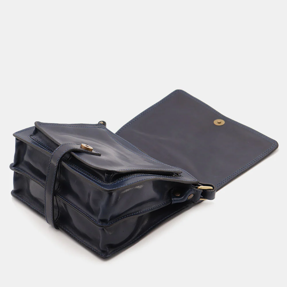 Borsa a tracolla ViaVerdi linea Firenze in pelle blu 100% Made in Italy realizzata artigianalmente dai nostri maestri pellettieri in Toscana.