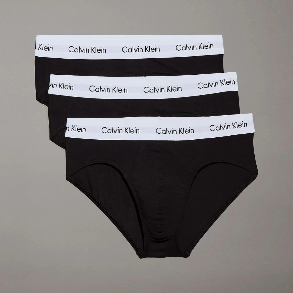 3 Slip Neri con bordino bianco Misto cotone-elastan Vita media, si appoggia sui fianchi Vita elastica con scritta Calvin Klein 95% cotone 5% elastan