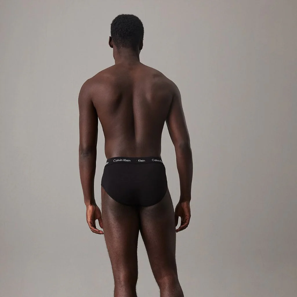 3 Slip Neri Bordino Nero Misto cotone-elastan Vita media, si appoggia sui fianchi Vita elastica con scritta Calvin Klein 95% cotone 5% elastan