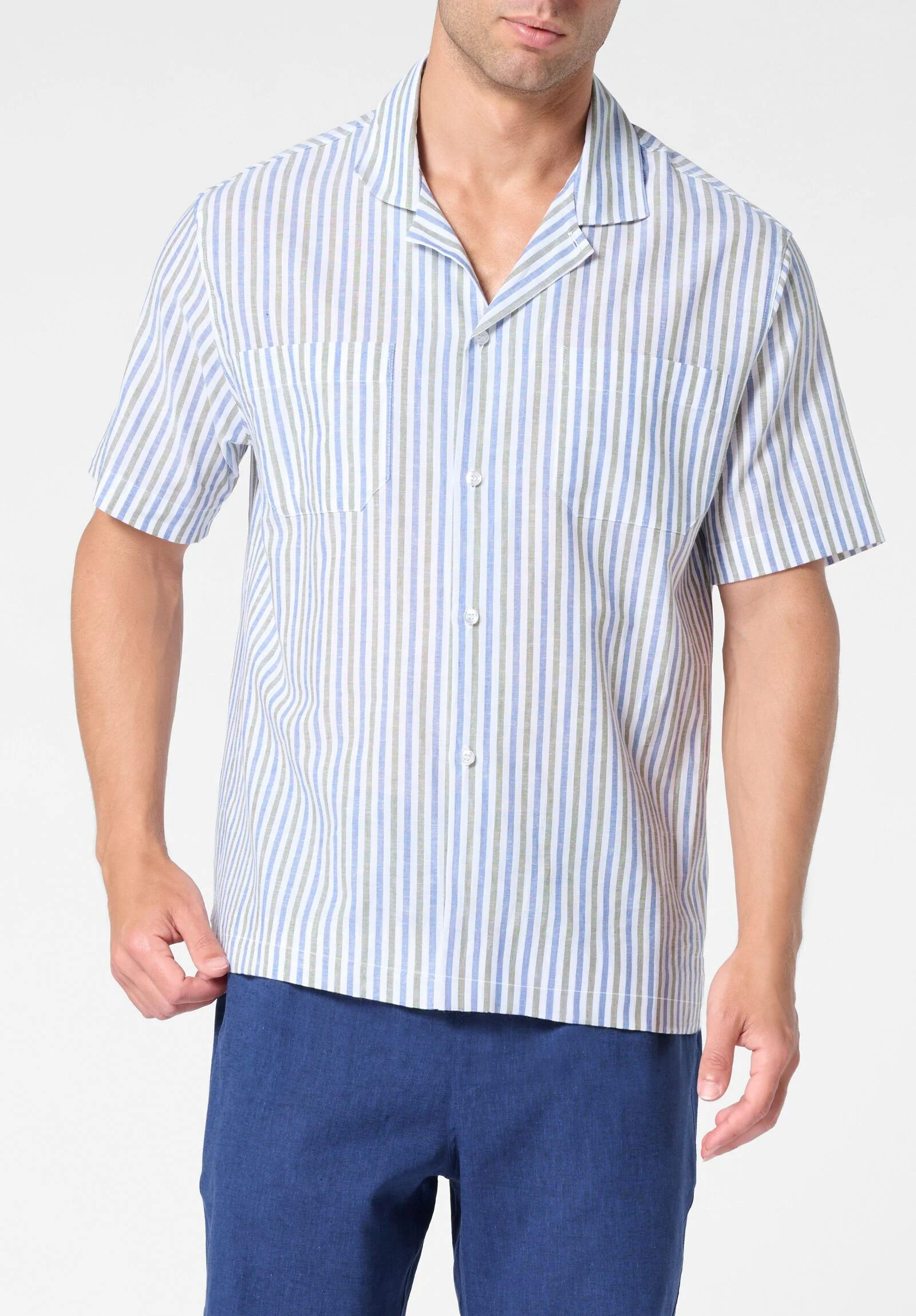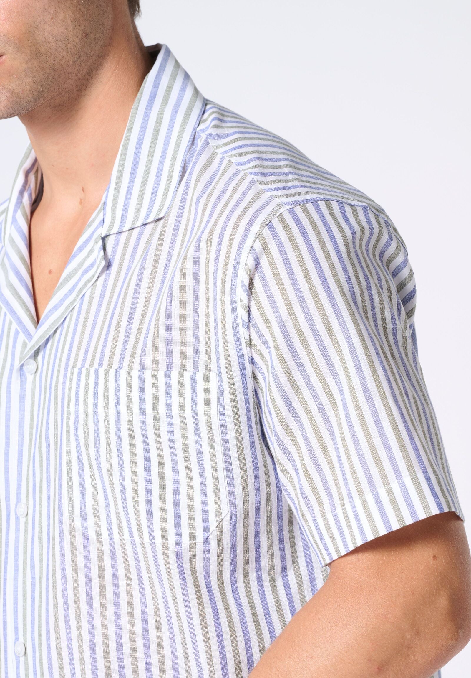Camicia Manica Corta in Lino e Cotone – Fantasia Righe Fantasia