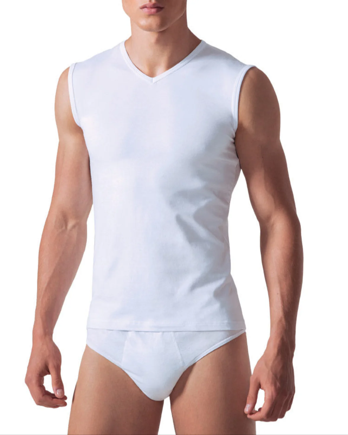 La canotta da uomo con scollo a V è un capo essenziale e versatile, pensato per garantire comfort e stile in ogni occasione. Realizzata in tessuto bielastico composto da 93% cotone e 7% elastan, offre morbidezza, traspirabilità e una vestibilità aderente che si adatta naturalmente al corpo.