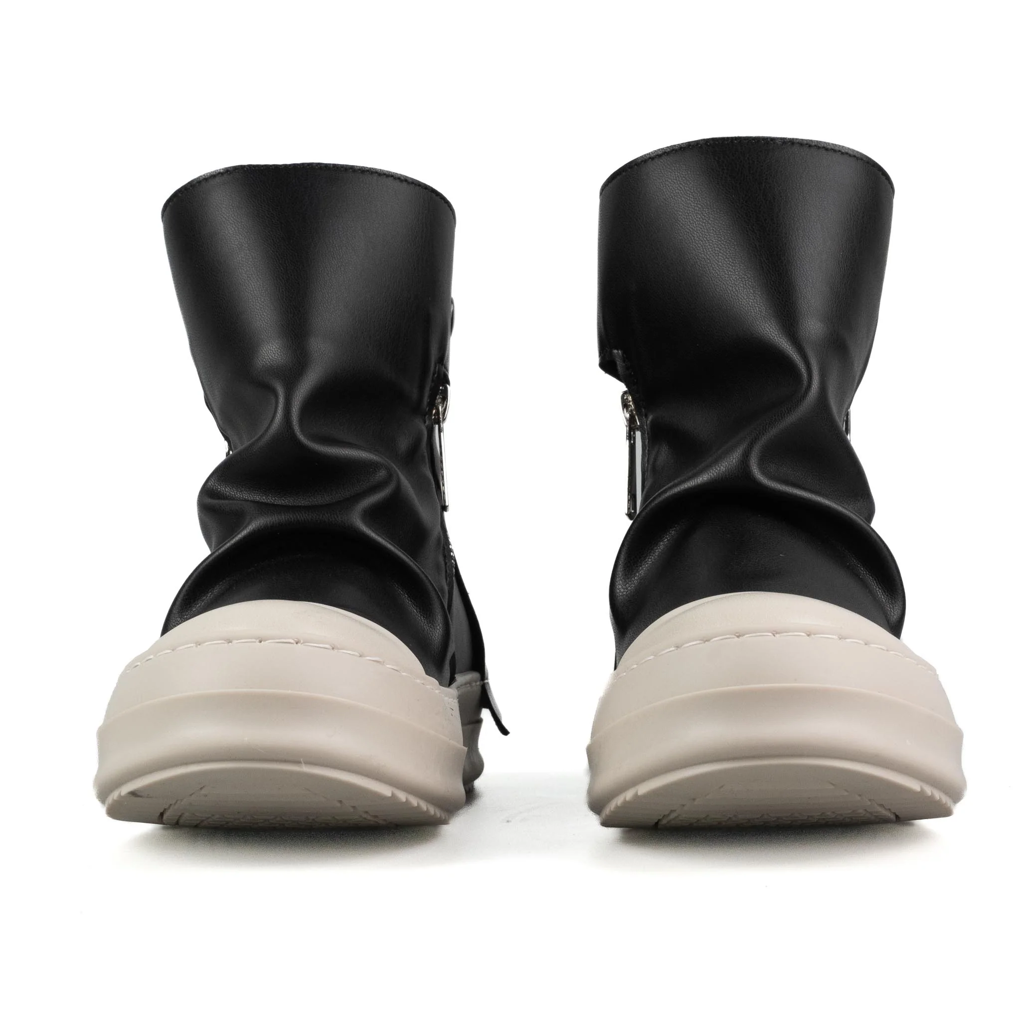 Stivaletto in pelle Colore: Nero Cerniere Argento Fondo beige