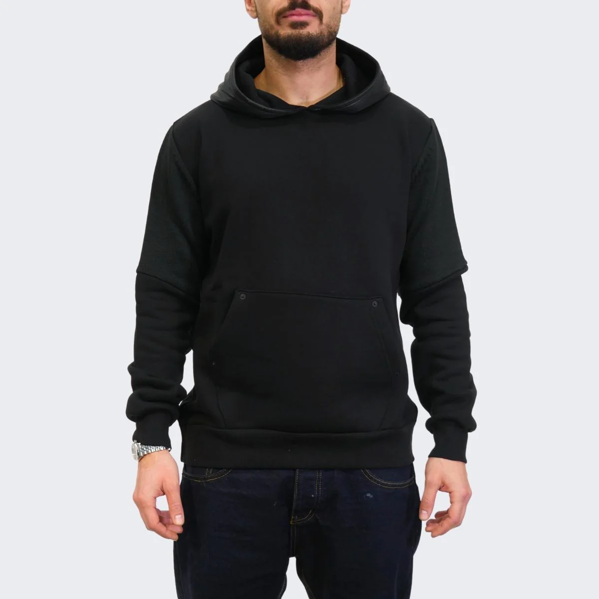 Felpa con cappuccio da uomo, retro il lana.