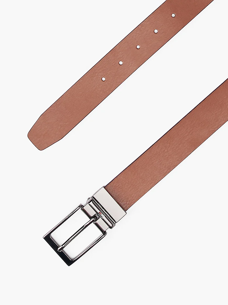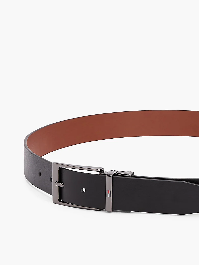 La cintura reversibile, in pelle dai colori a contrasto, รจ un accessorio versatile che si abbina a qualsiasi look. Caratteristiche principali โข Pelleโข Reversibileโข Finitura zigrinata piattaโข Fibbia rettangolare in metalloโข Branding Tommy Hilfigerโข Bandierina Tommy Hilfiger smaltata sul passante Modello e dimensioni โข Larghezza: 3,5 cm Composizione e cura โข 100% pelle