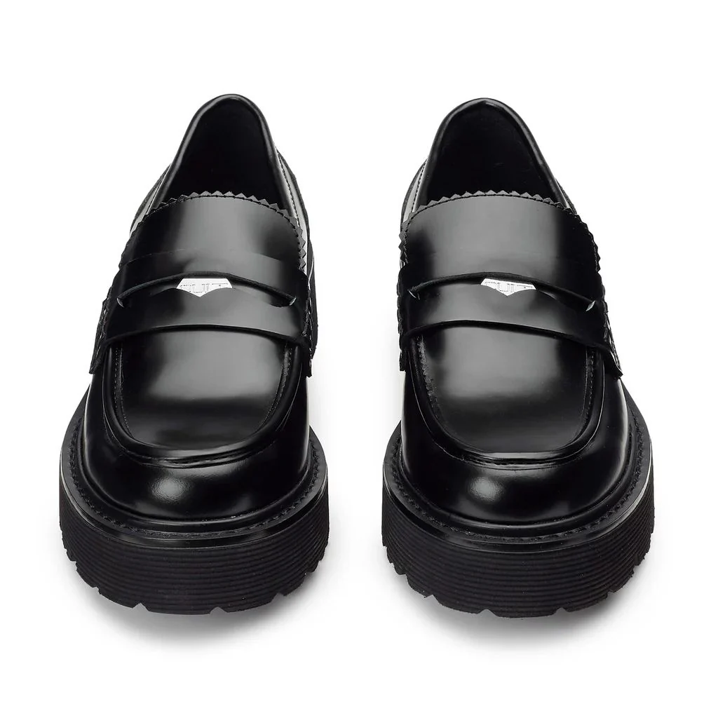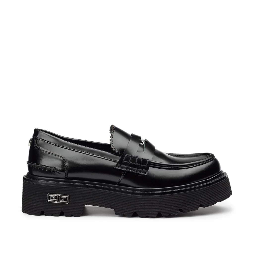 Intramontabili i mocassini della linea Slash firmati da Cult per questo inverno. In pelle nera, questi mocassini con spessa suola in EVA, sono un must per la comoditร e presentano l’iconica targhetta logata metallica. Da indossare sotto gonne o pantaloni per un look rock chic.