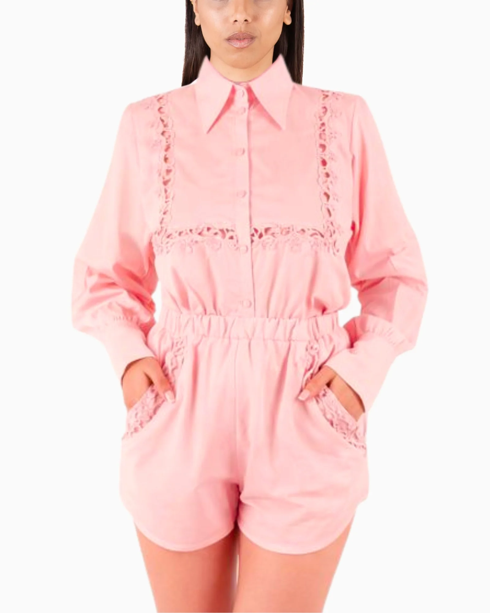 DISTRICT MARGHERITA MAZZEICollezione Parthenope โ Linea Coral Bay โ SS26 Completo beachwear composto da camicia a manica lunga e pantaloncino coordinato, realizzato in cotone 100% e impreziosito da raffinata passamaneria applicata. La camicia presenta una linea morbida e femminile, con chiusura frontale e dettagli decorativi in passamaneria che valorizzano il design, conferendo unโeleganza artigianale e […]