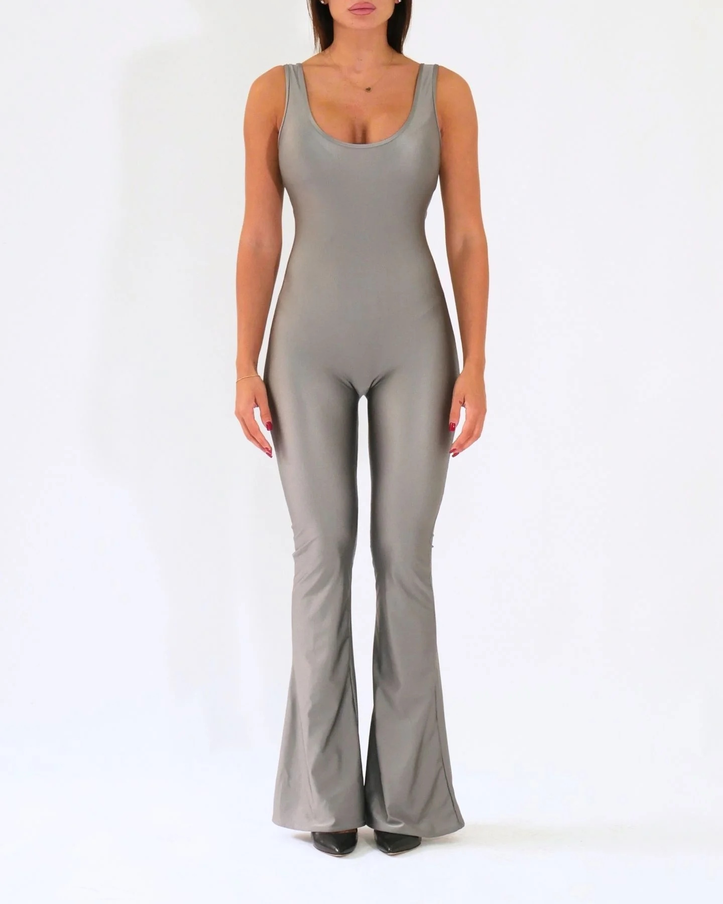 District Margherita MazzeiTuta intera con gamba a zampaMade in ItalyMateriale: 80% Poliammide , 20% ElastaneColore grigio piomboSku: AW77 0403