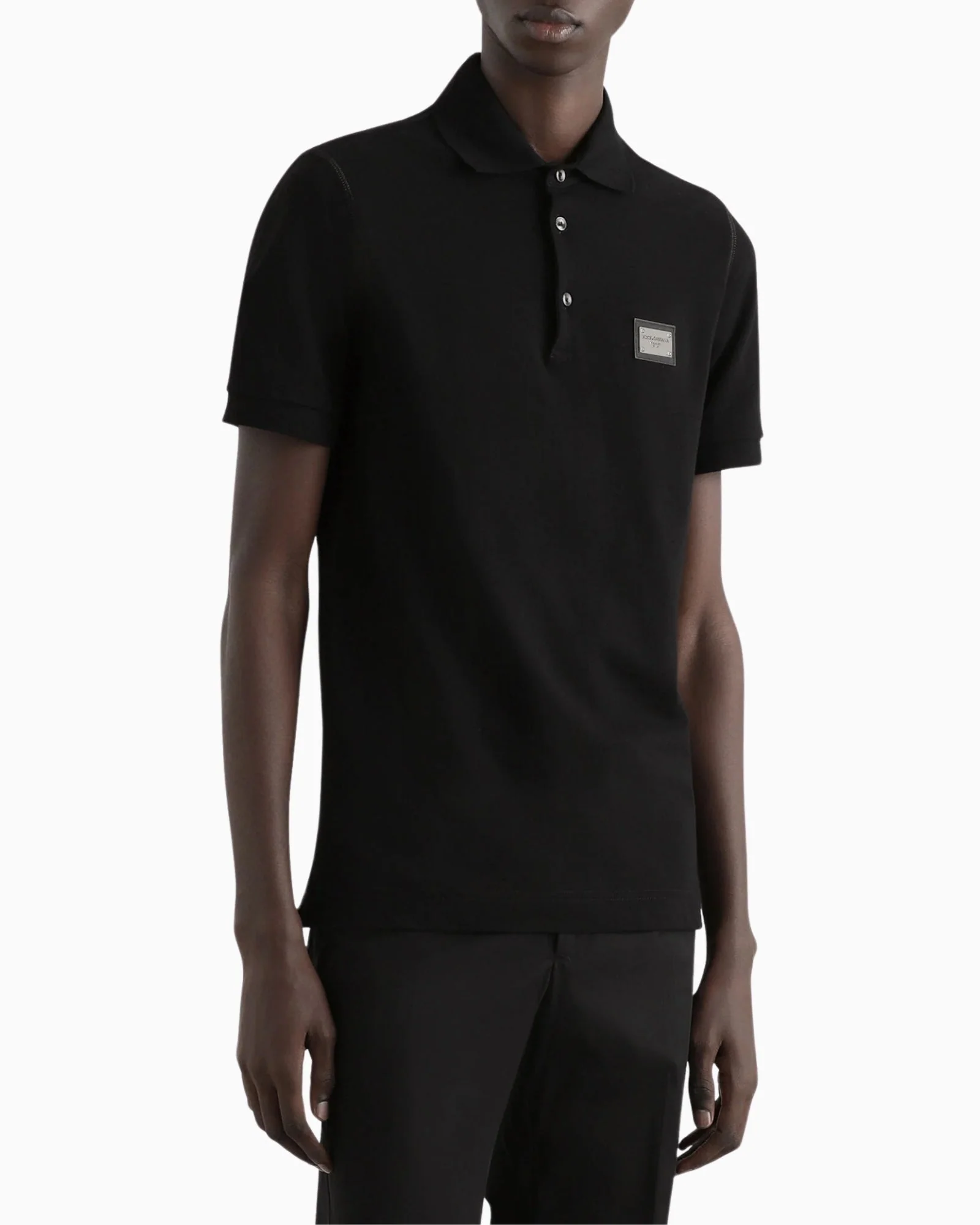 Polo in piqué di cotone con etichetta metallica con logo Dolce&Gabbana: