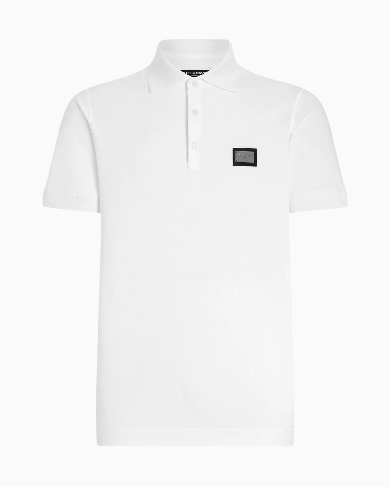 Polo in piqué di cotone con etichetta metallica con logo Dolce&Gabbana: