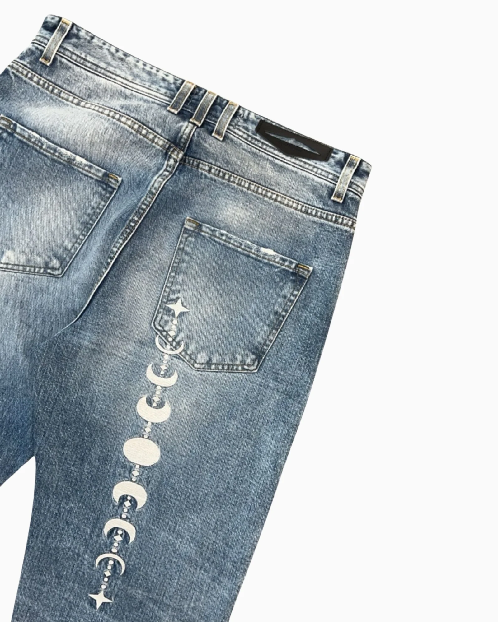 Baggy blue embroidered tribal moon