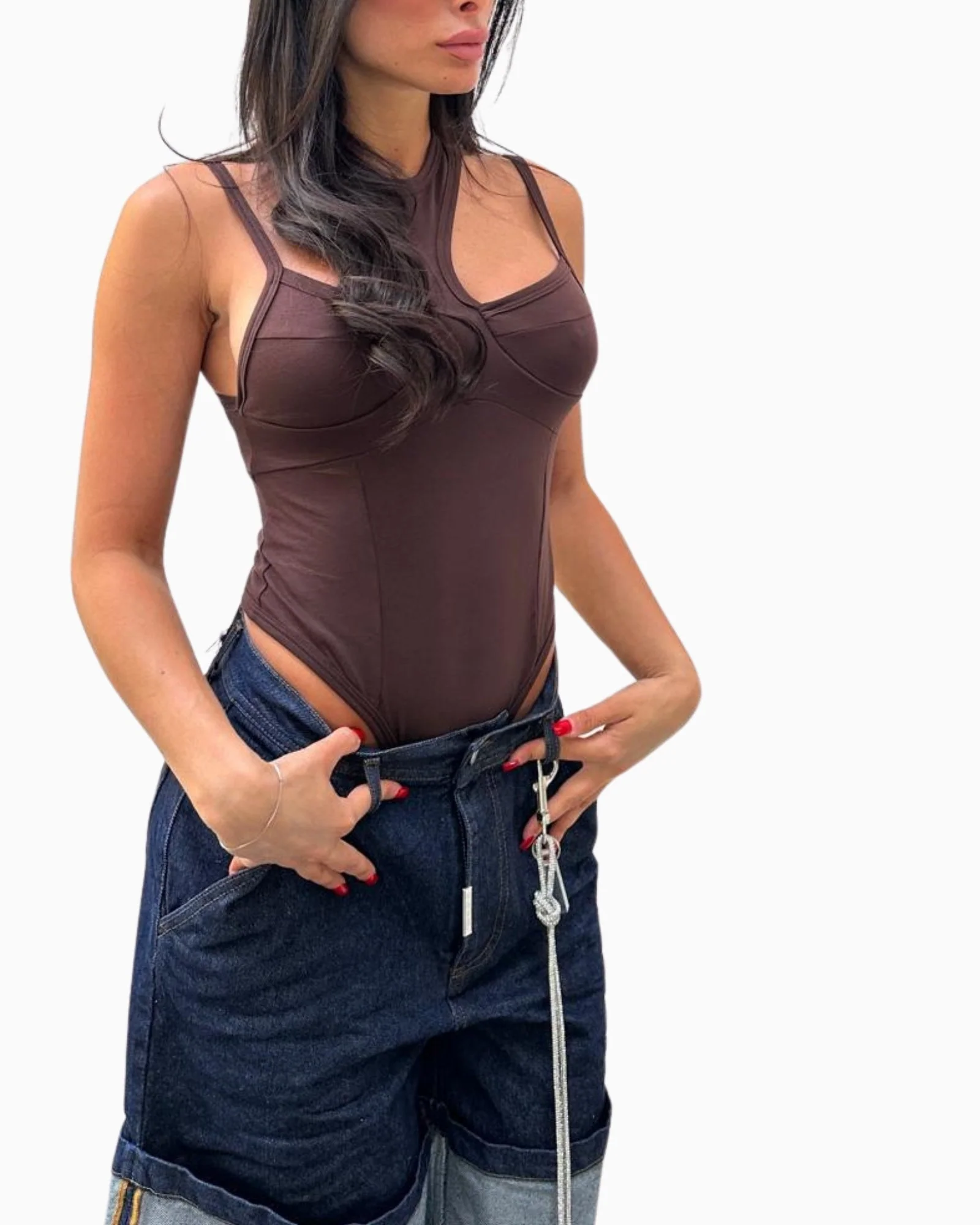Il design con doppie spalline e chiusura regolabile lo rende versatile e perfetto per ogni outfit, dal casual allโurban chic.