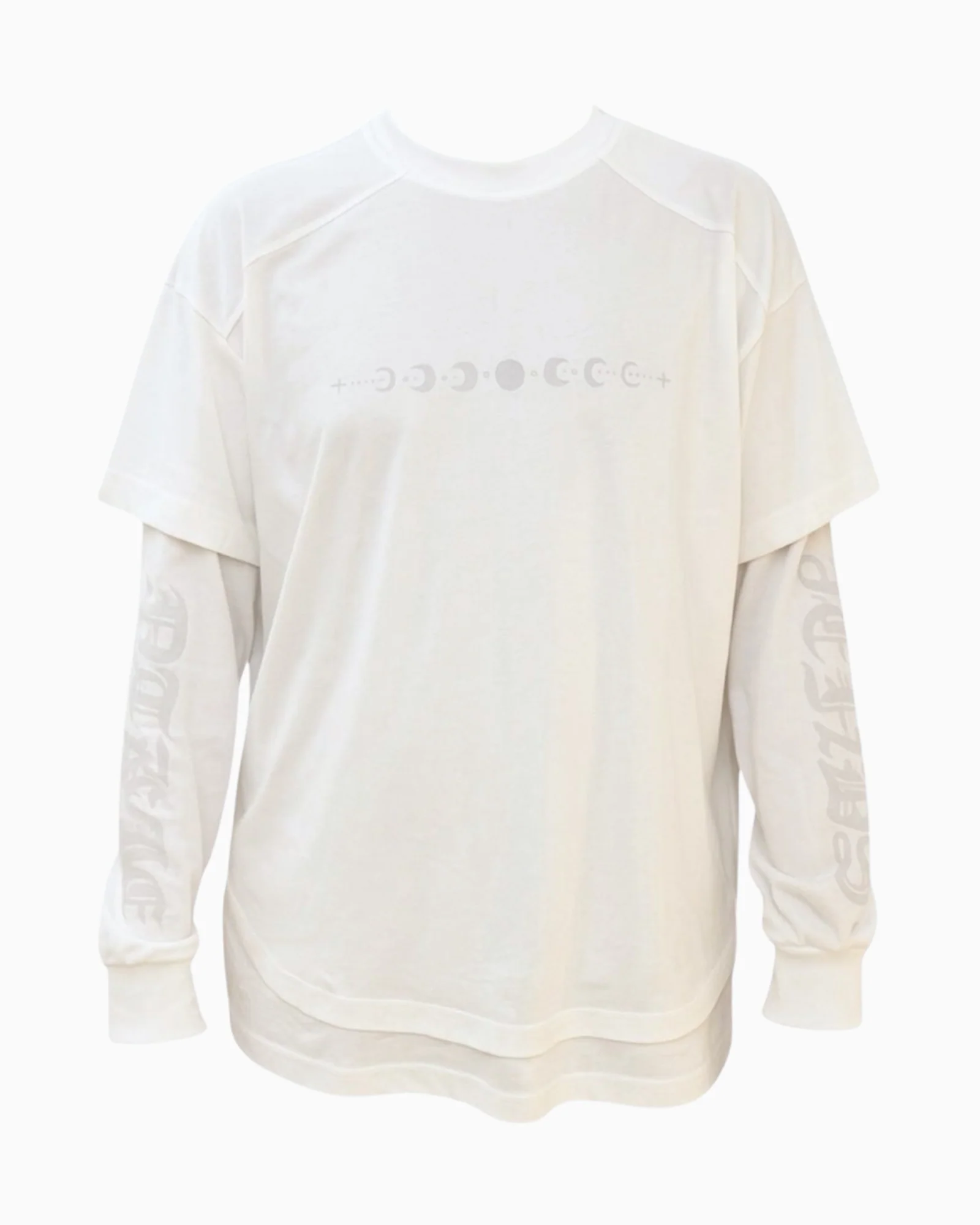 Double sleeve tee white tribal moon