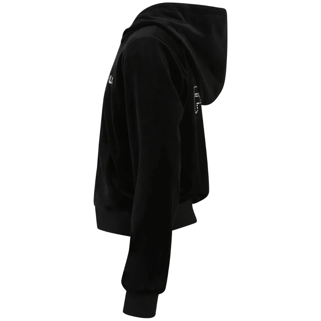 Felpa in velluto con zip Colore: Nero Logo bianco Scritta con brillantini dietro Felpa con cappuccio