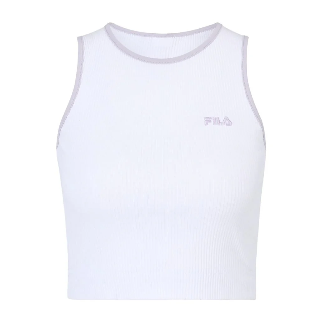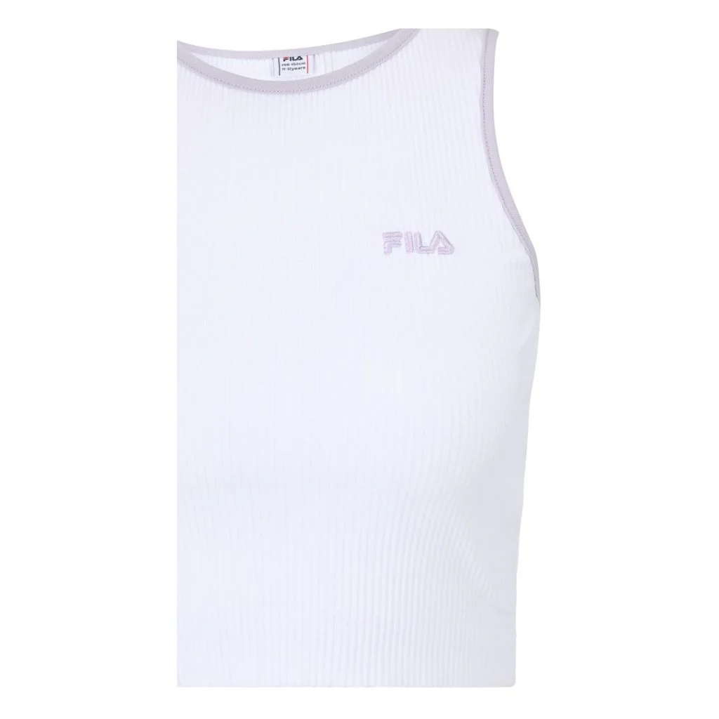 Canotta attillata in cotone elasticizzato a costine con rifiniture a contrasto. Con logo Fila ricamato a contrasto sul petto sinistro.