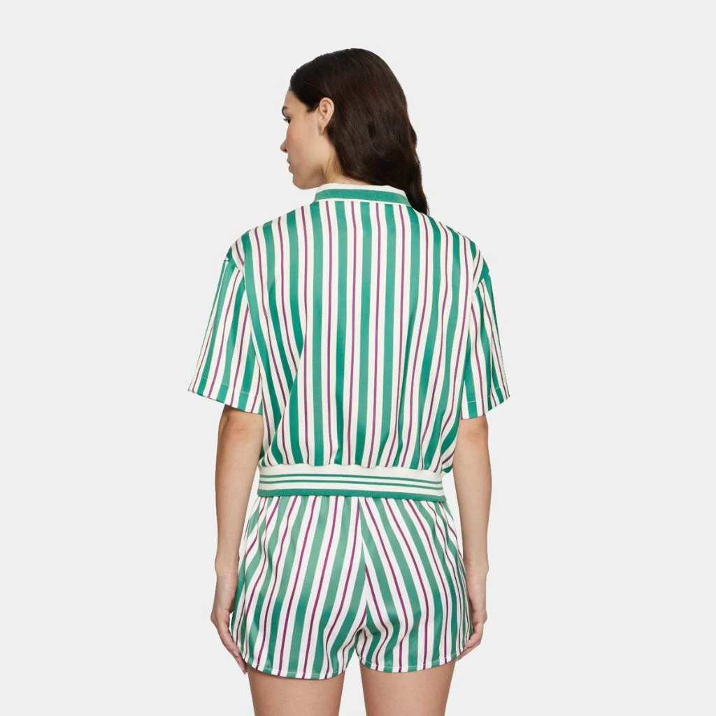 Polo corta in raso di poliestere stampato, con chiusura lampo CF dorata e stemma F-box dorato sul petto.