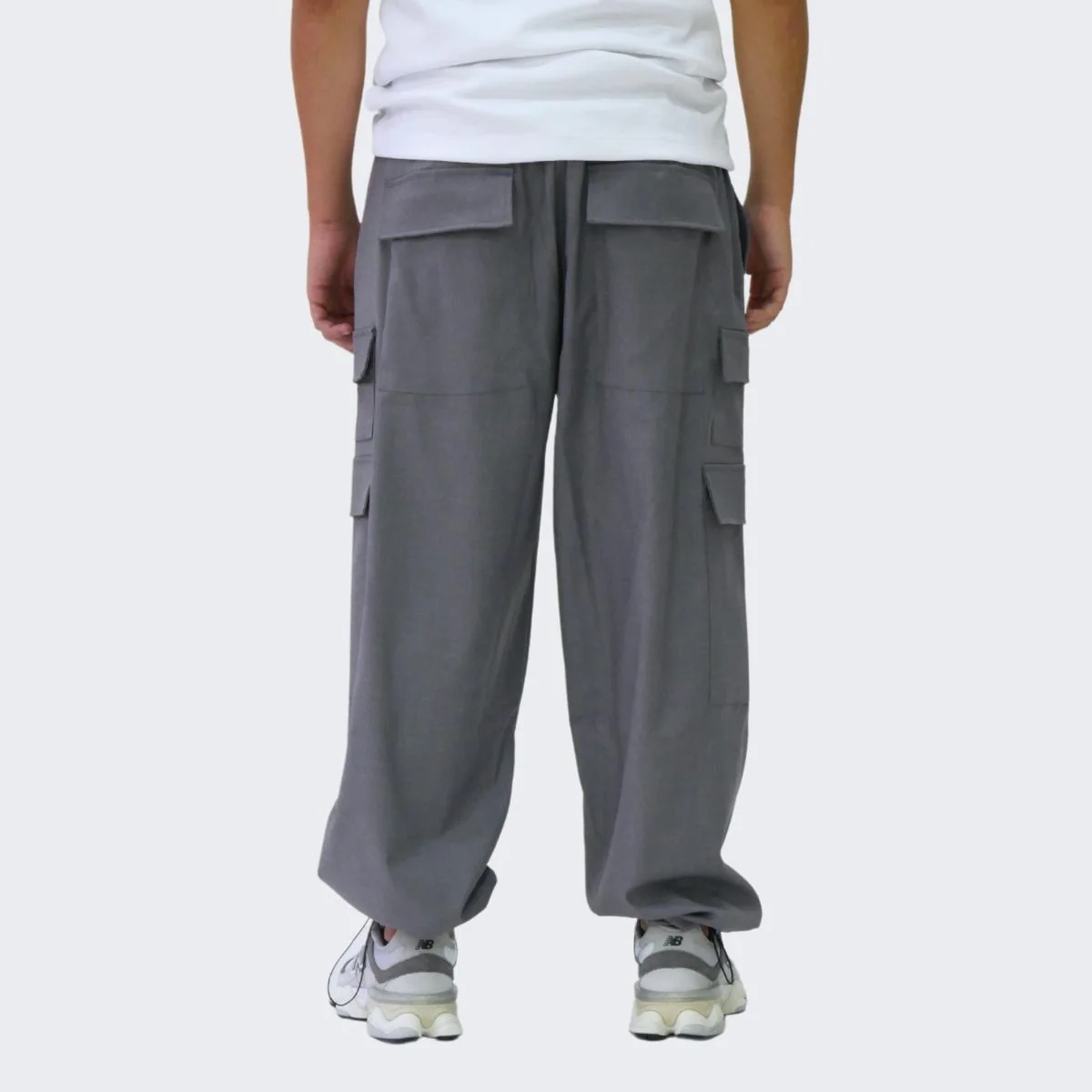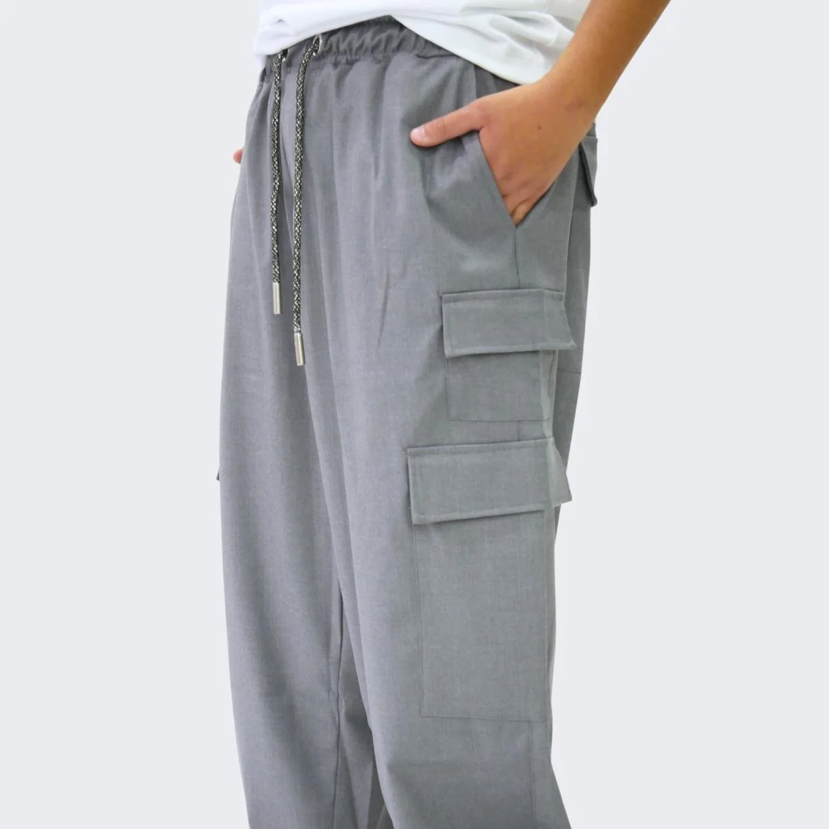 Pantalone cargo uomo con elastici restringenti alle caviglie.