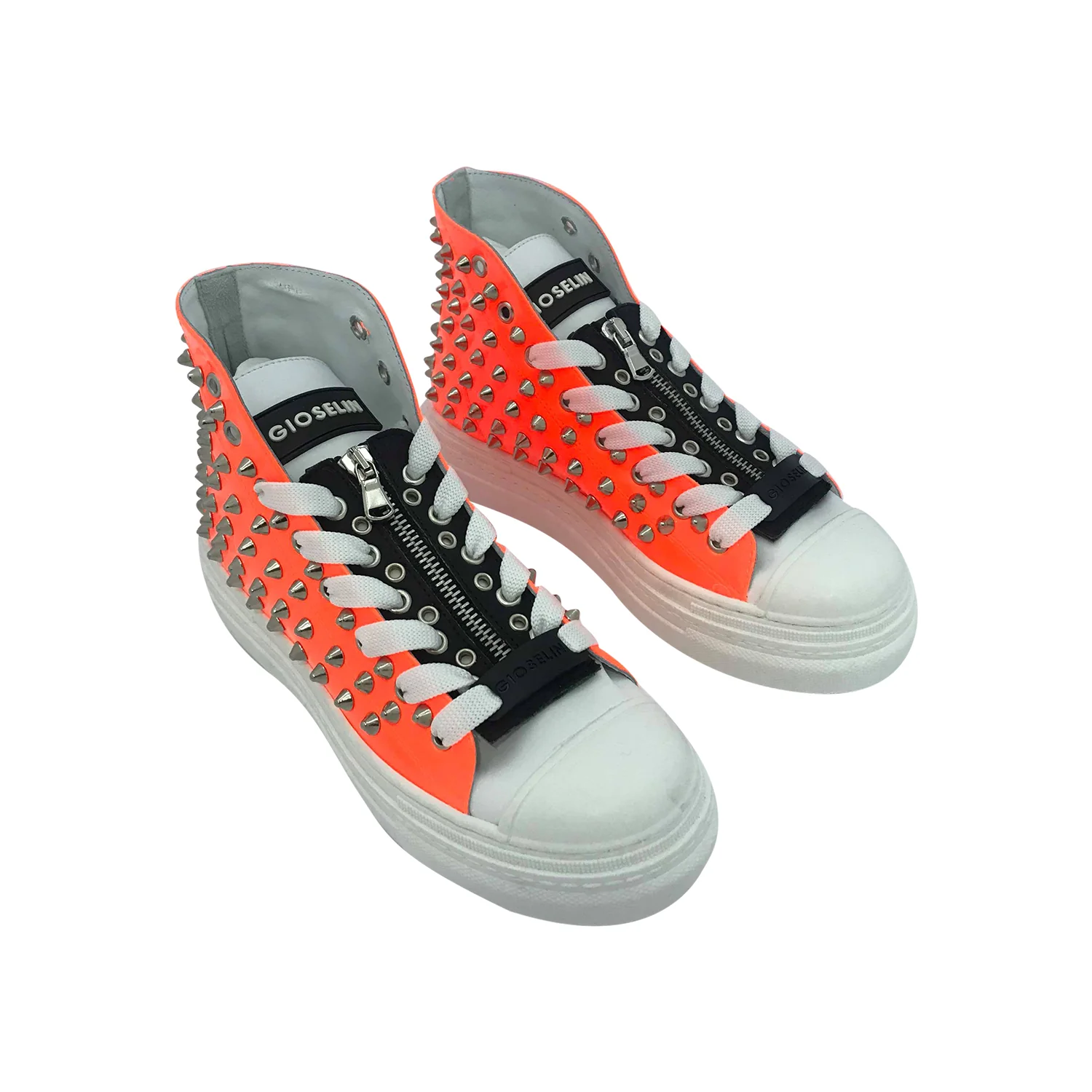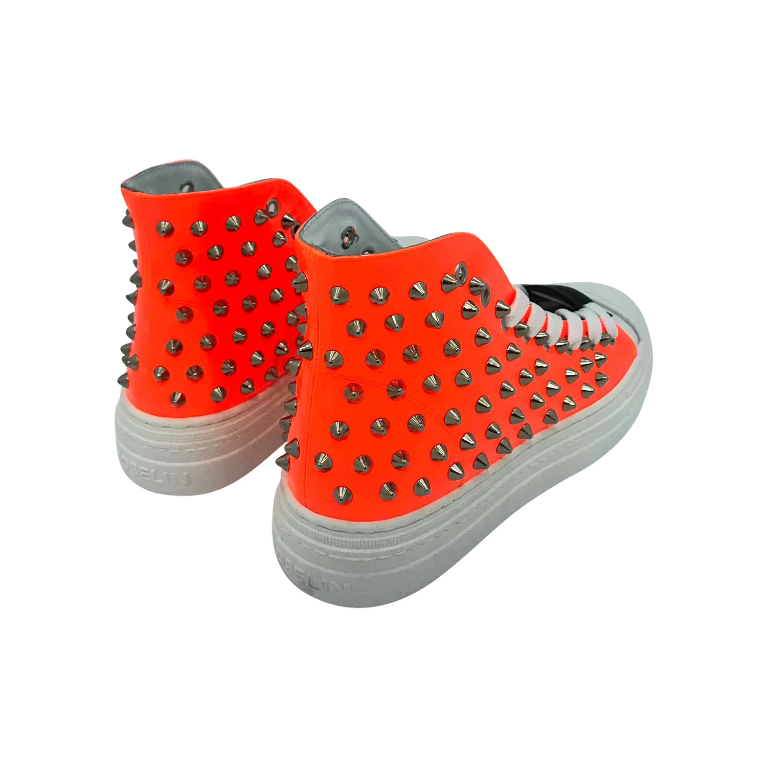 Sneakers vernice arancio Punta e fondo bianco Accessorio rimovibile nero Laccio bianco