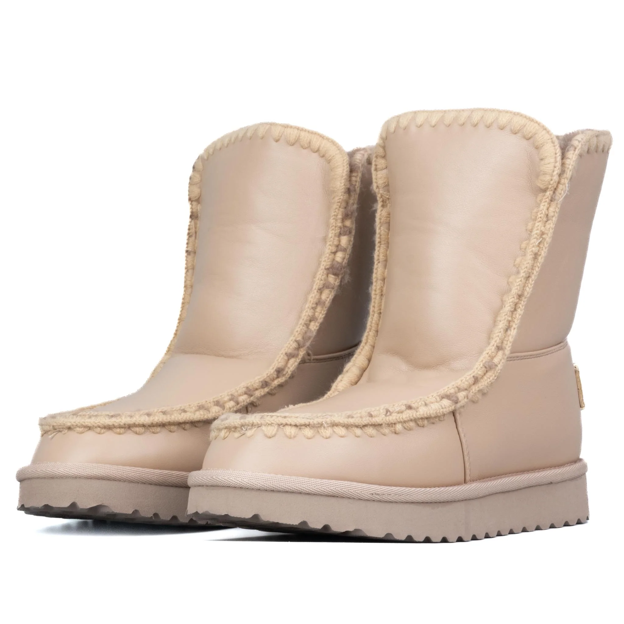 Stivale Icon Eco-pelle Beige Pelliccia interna Logo oro sul retro Altezza gambale 17cm Altezza fondo 2cm