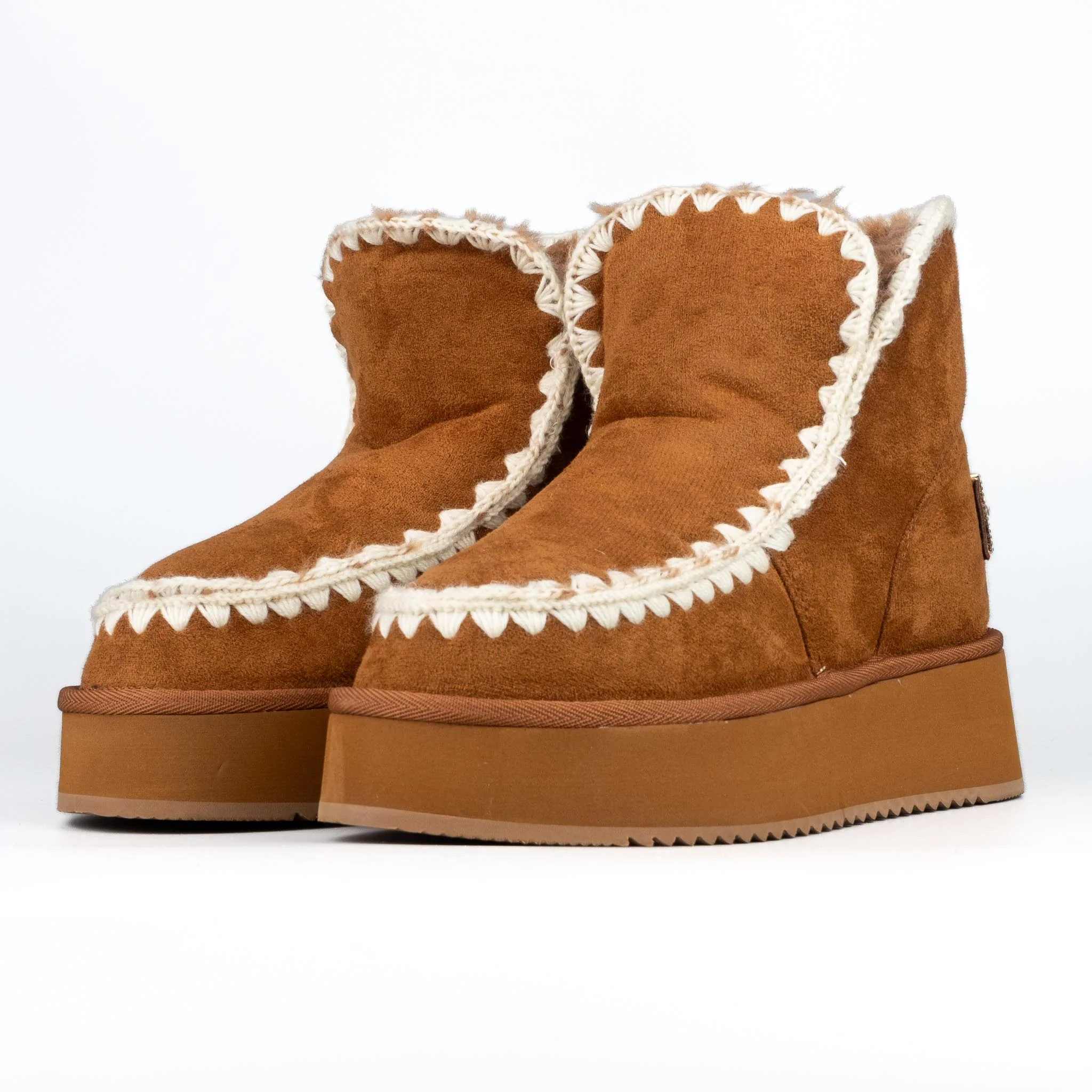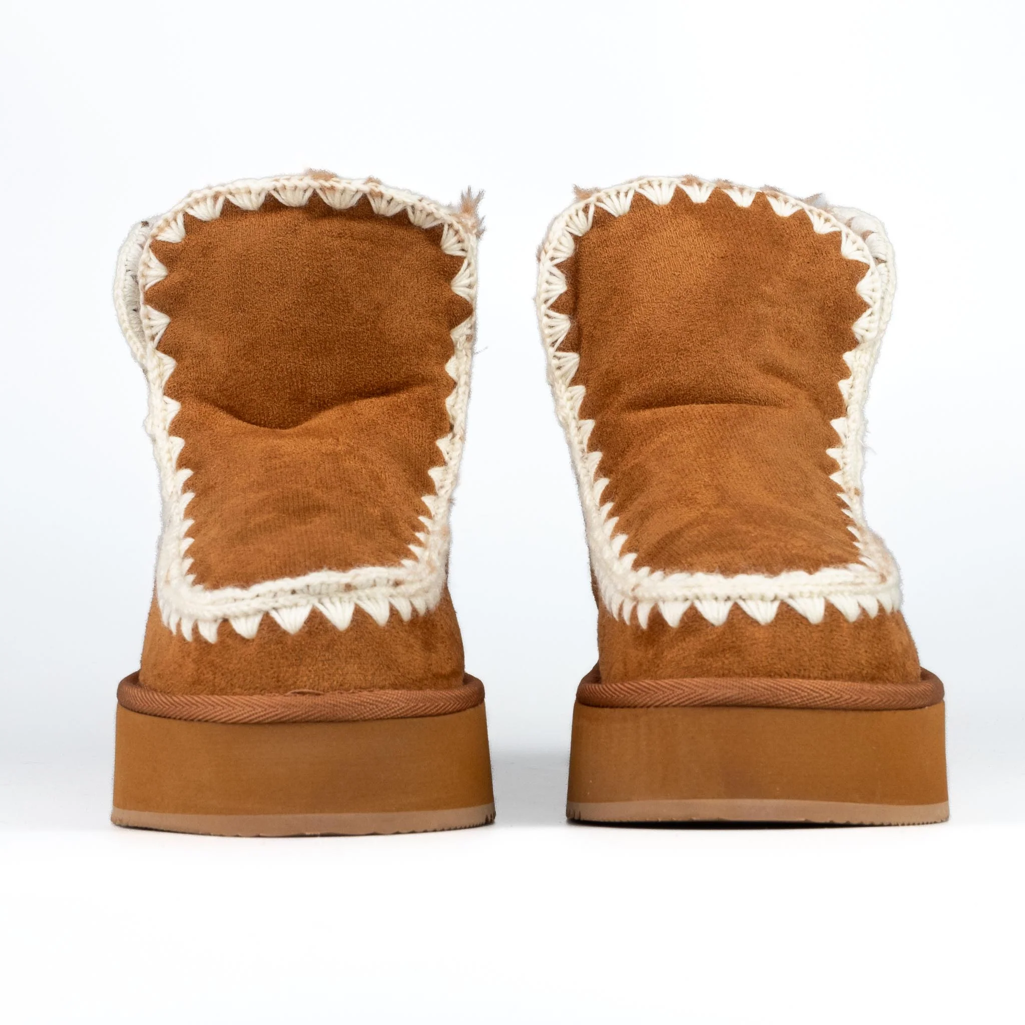 Stivale Platfrom Icon Camoscio Biscotto Pelliccia interna Logo brillantinato sul retro Altezza fondo 6cm