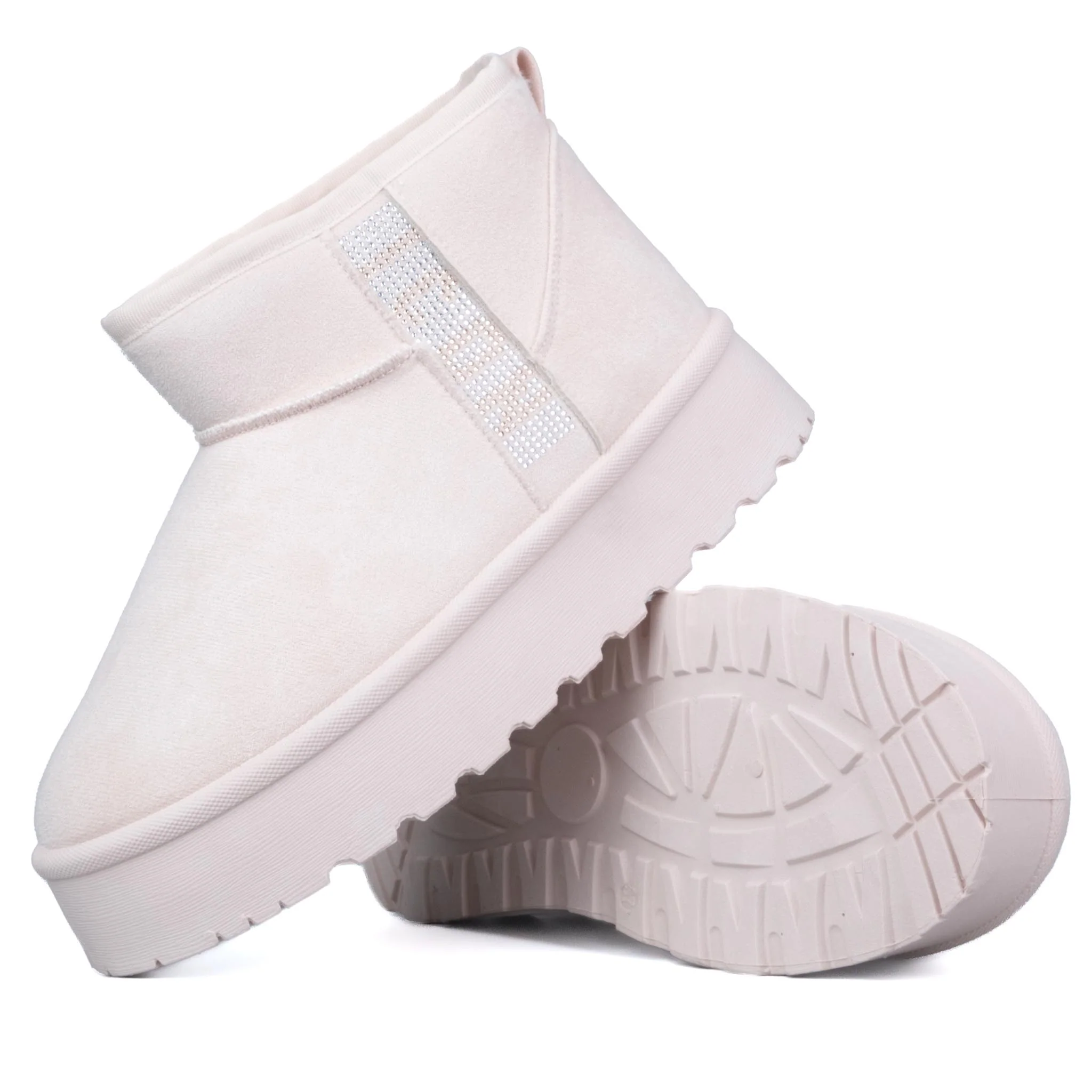 Stivaletto Icon Nabuk Cipria Pelliccia interna Brillantini sul lato Altezza gambale 10cm Suola platform 4cm