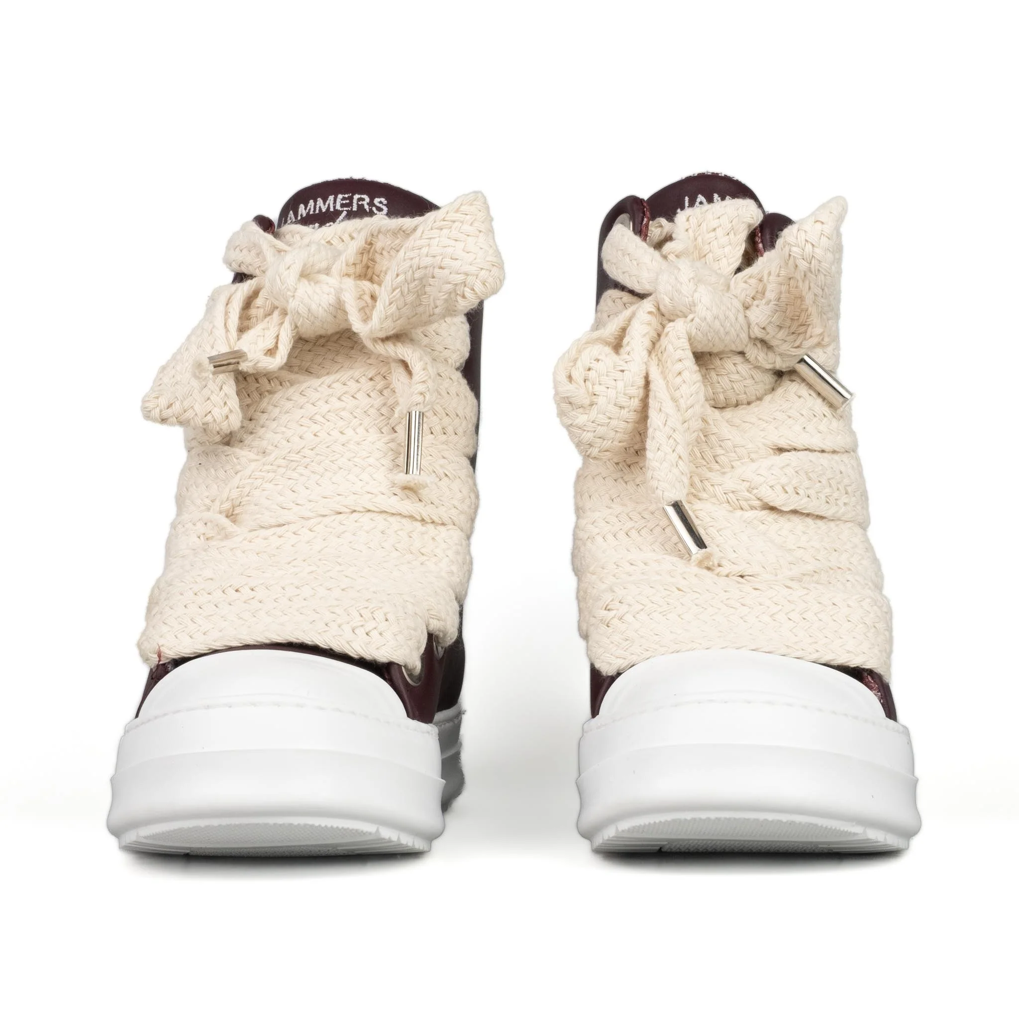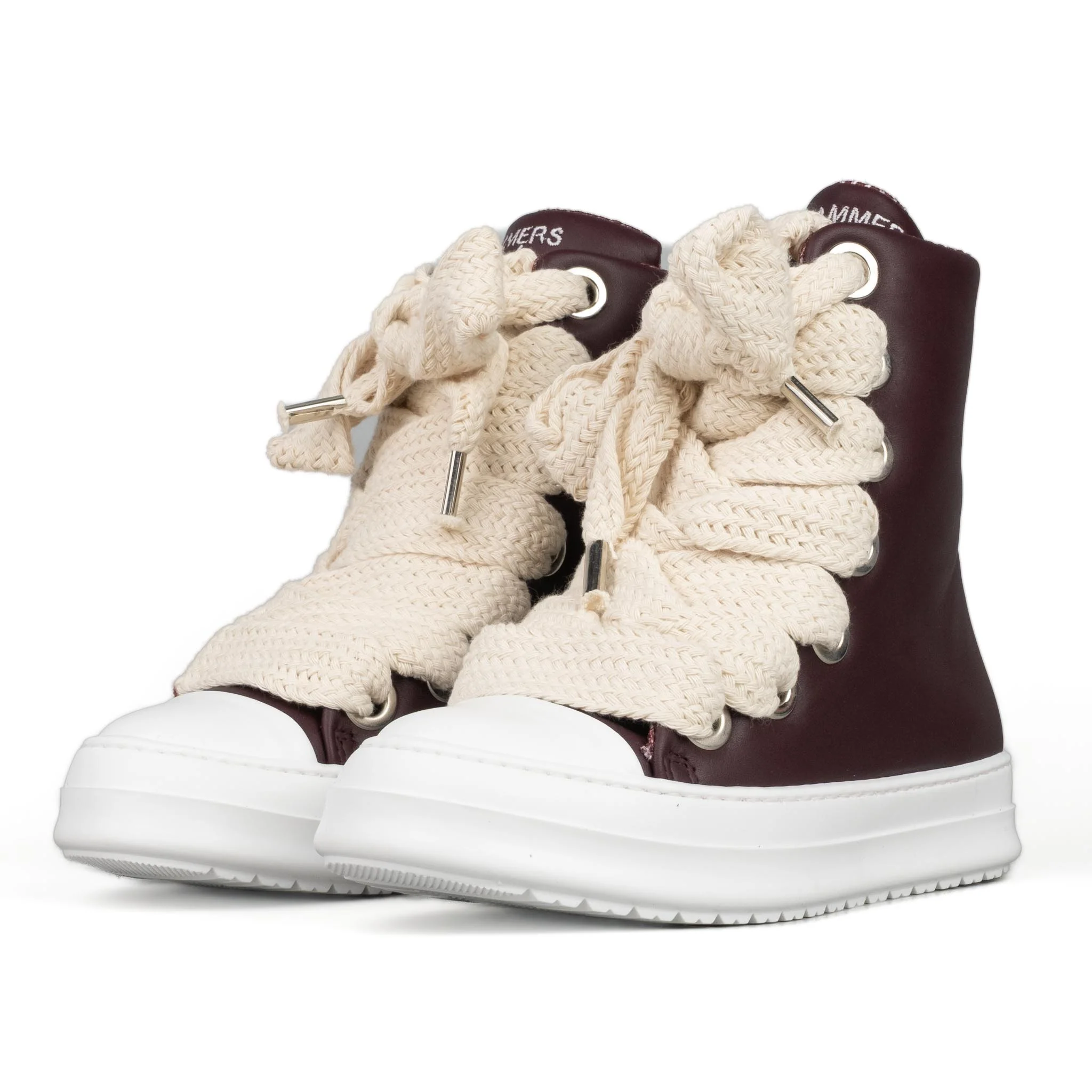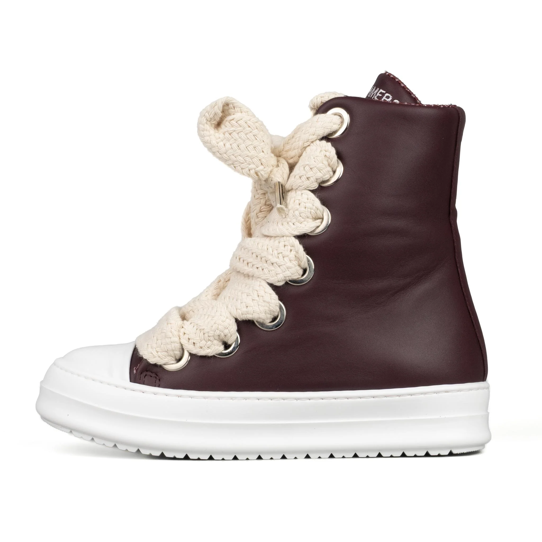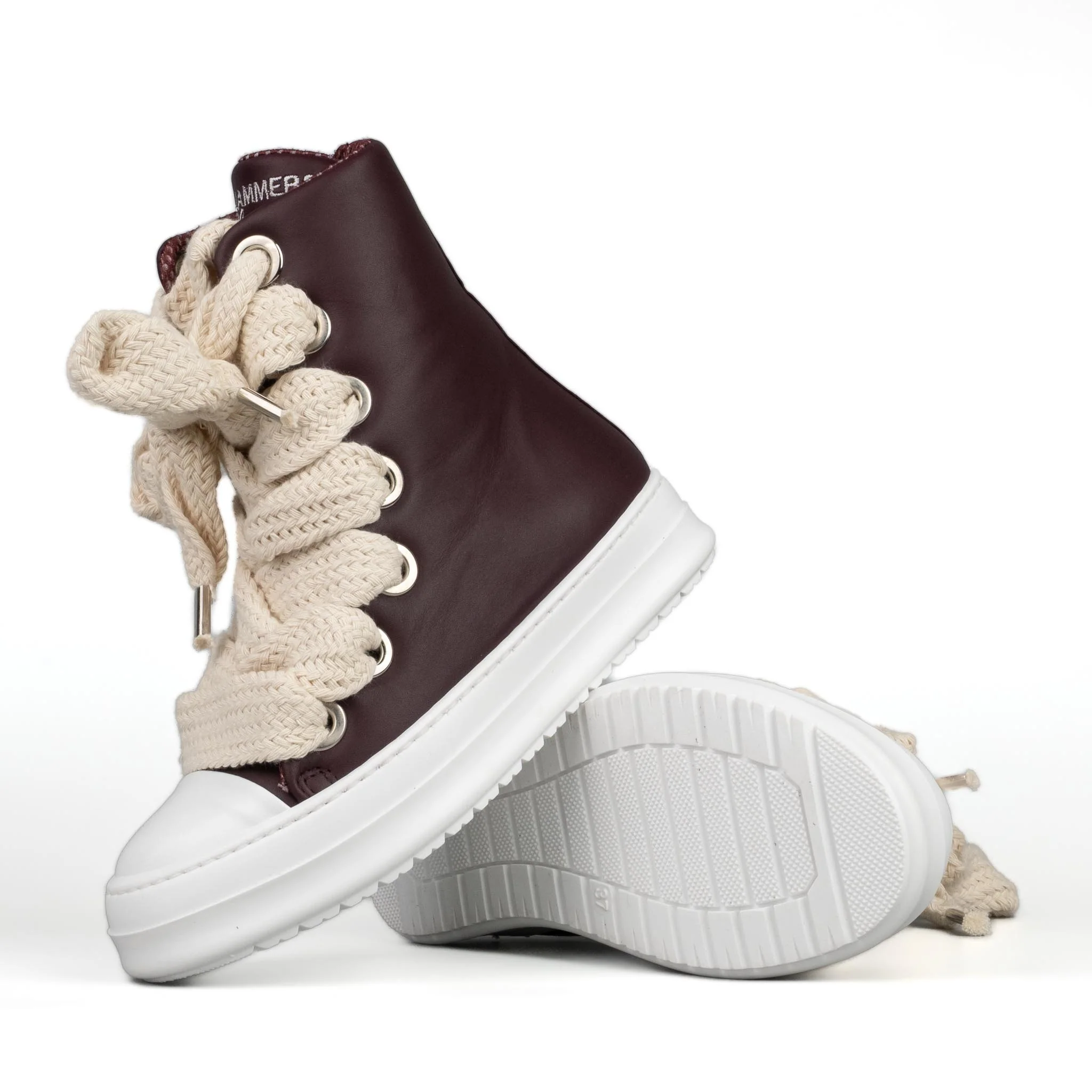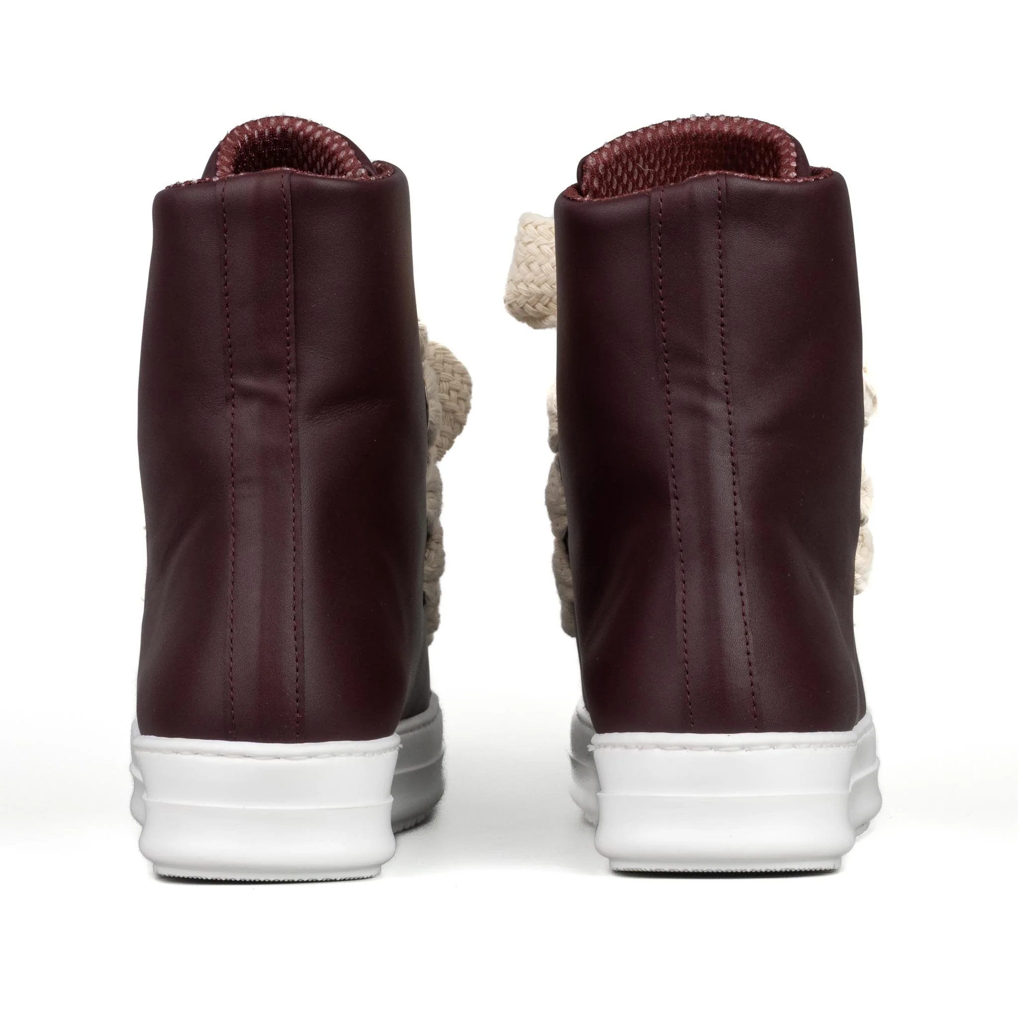 Stivaletto in pelle bordeaux Laccio doppio beige Logo ricamato frontale