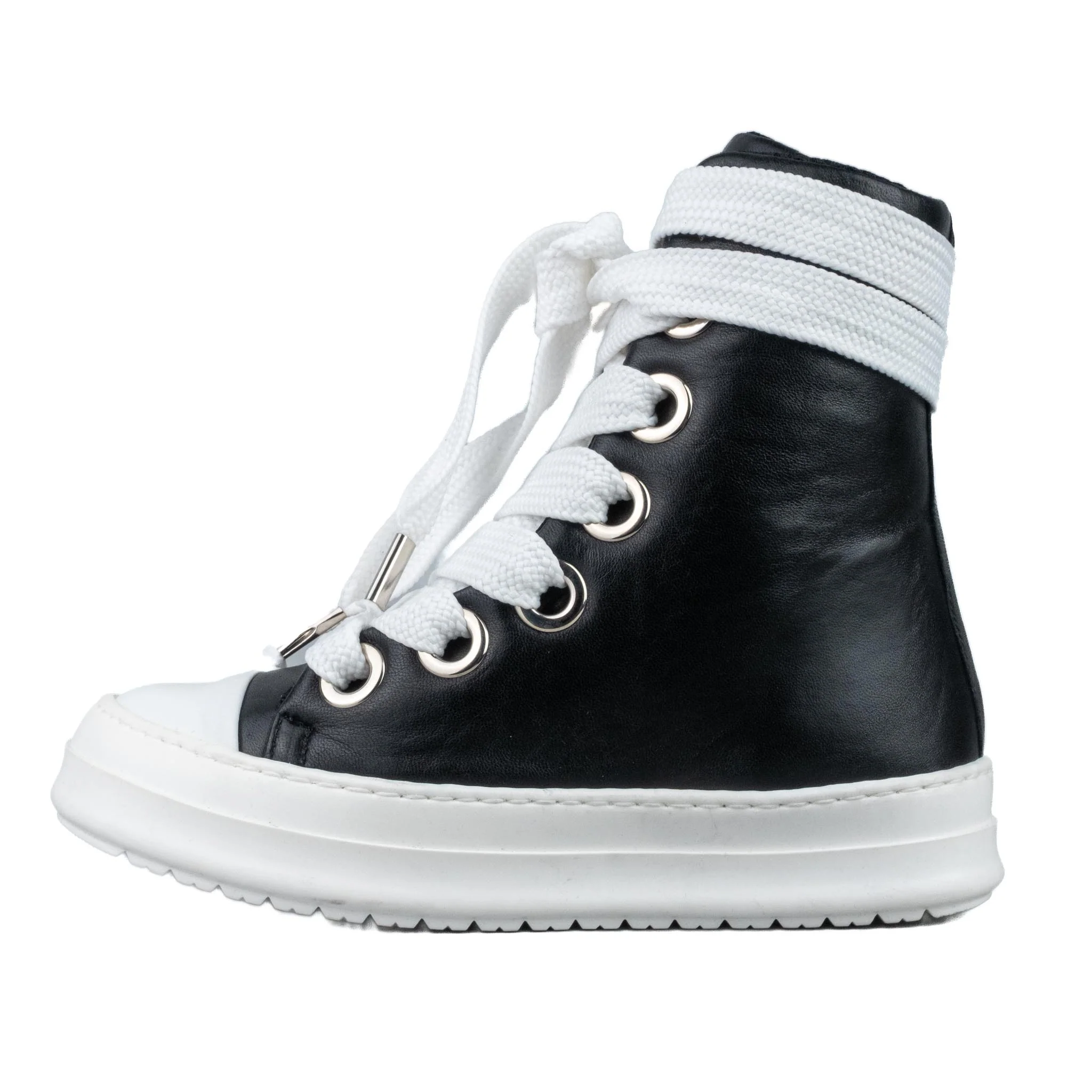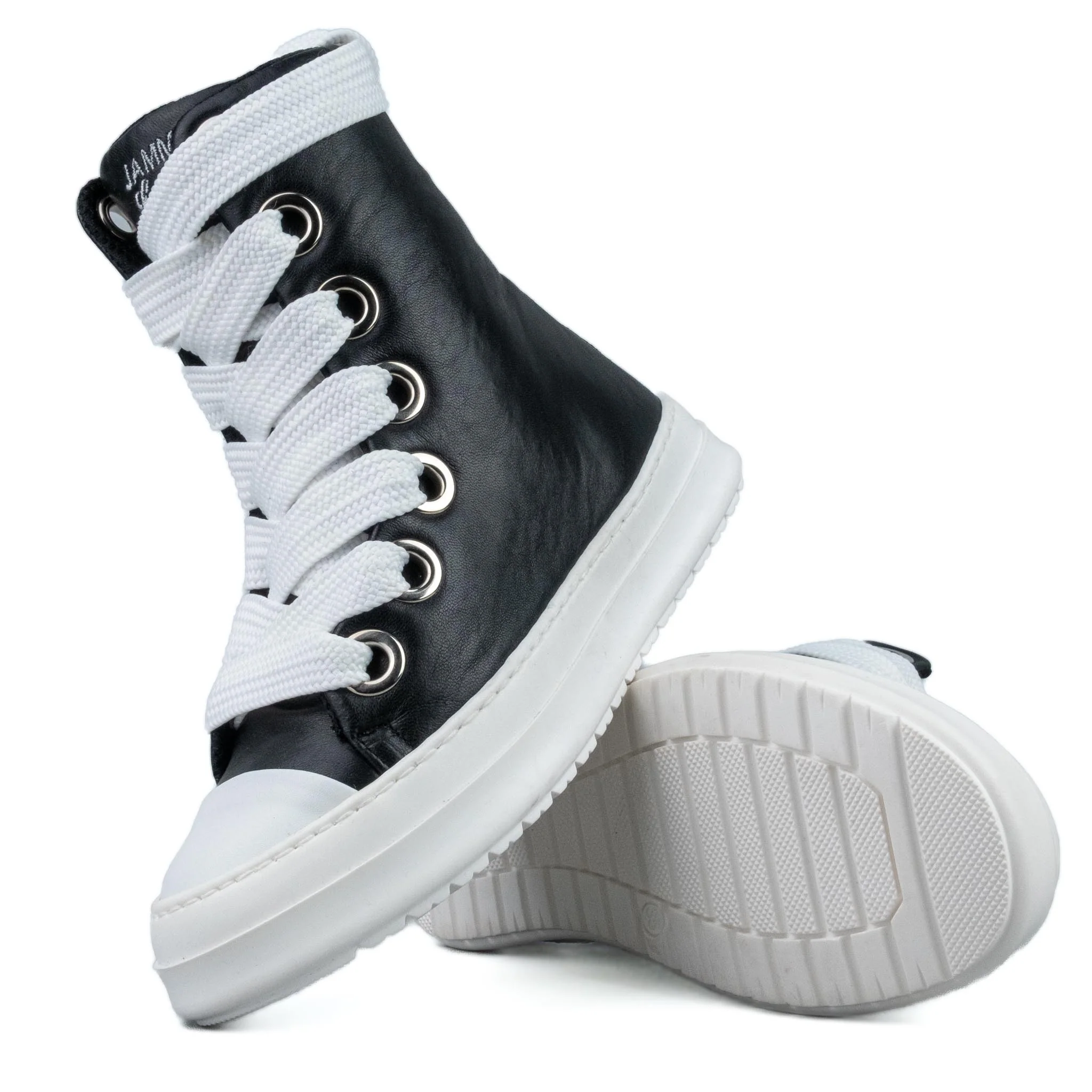 Stivaletto in pelle nero Laccio doppio bianco