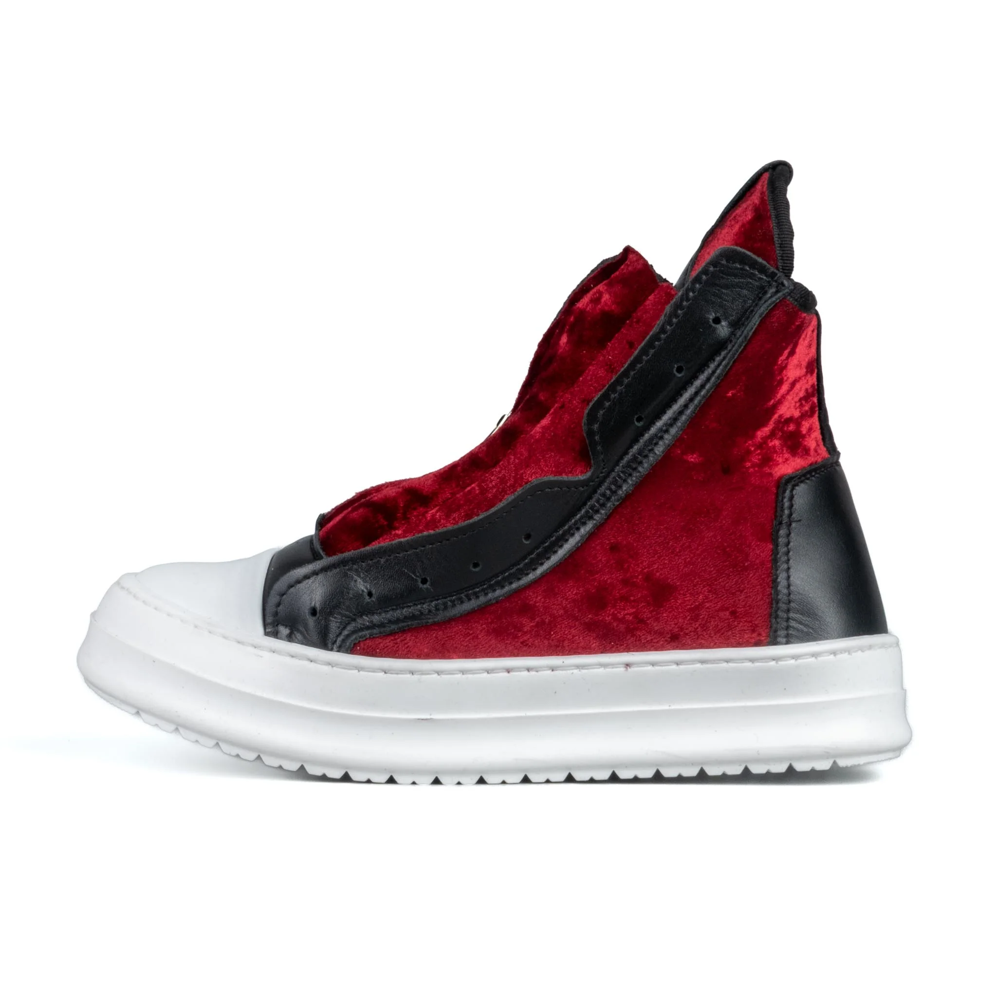 Stivaletto in ciniglia con riporti in pelle Colore: Bourdeaux Cerniere argento Fondo e punta bianco