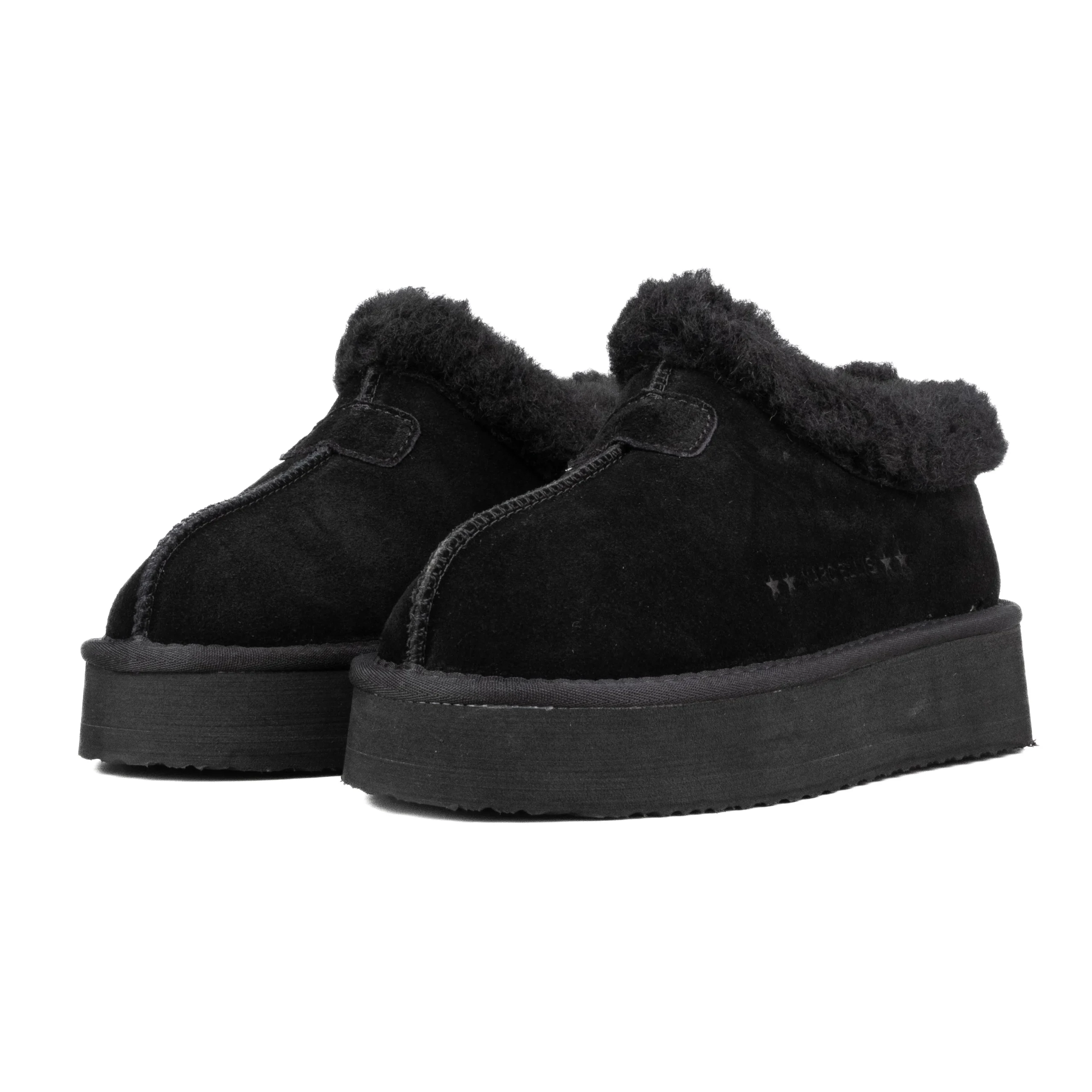 Scarpa a caviglia in nabuk Colore: Nero Pelliccia Nera Logo laterale stampato Altezza suola: 4.5