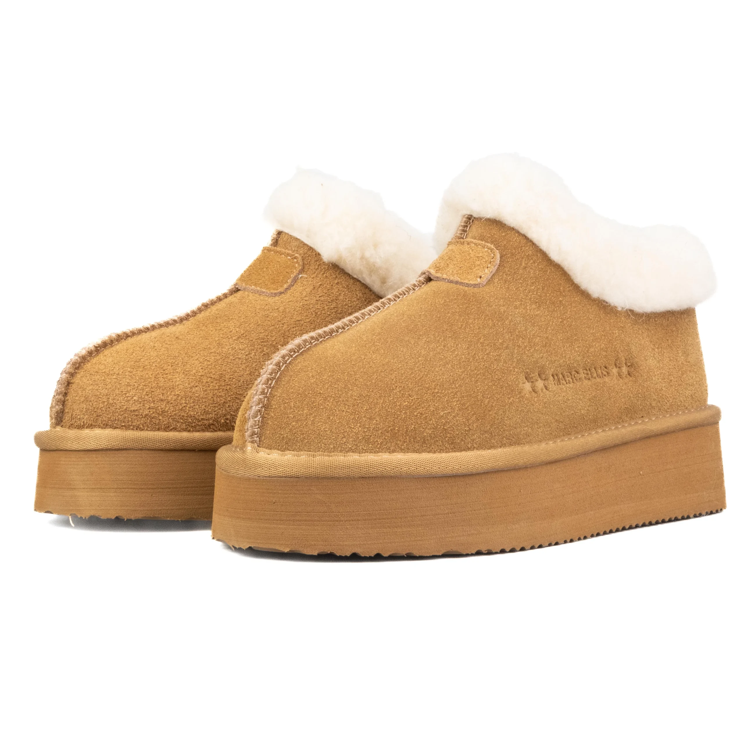 Scarpa a caviglia in nabuk Colore: Cuoio Pelliccia Bianca Logo laterale stampato Altezza suola: 4.5