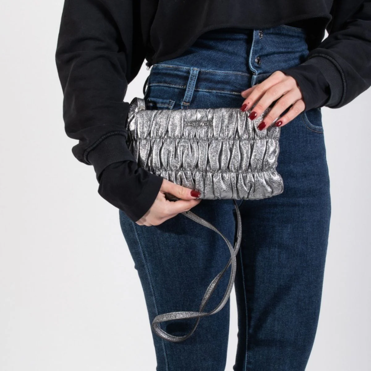la tracolla removibile da la possibiltร di usarla anche come pochette.