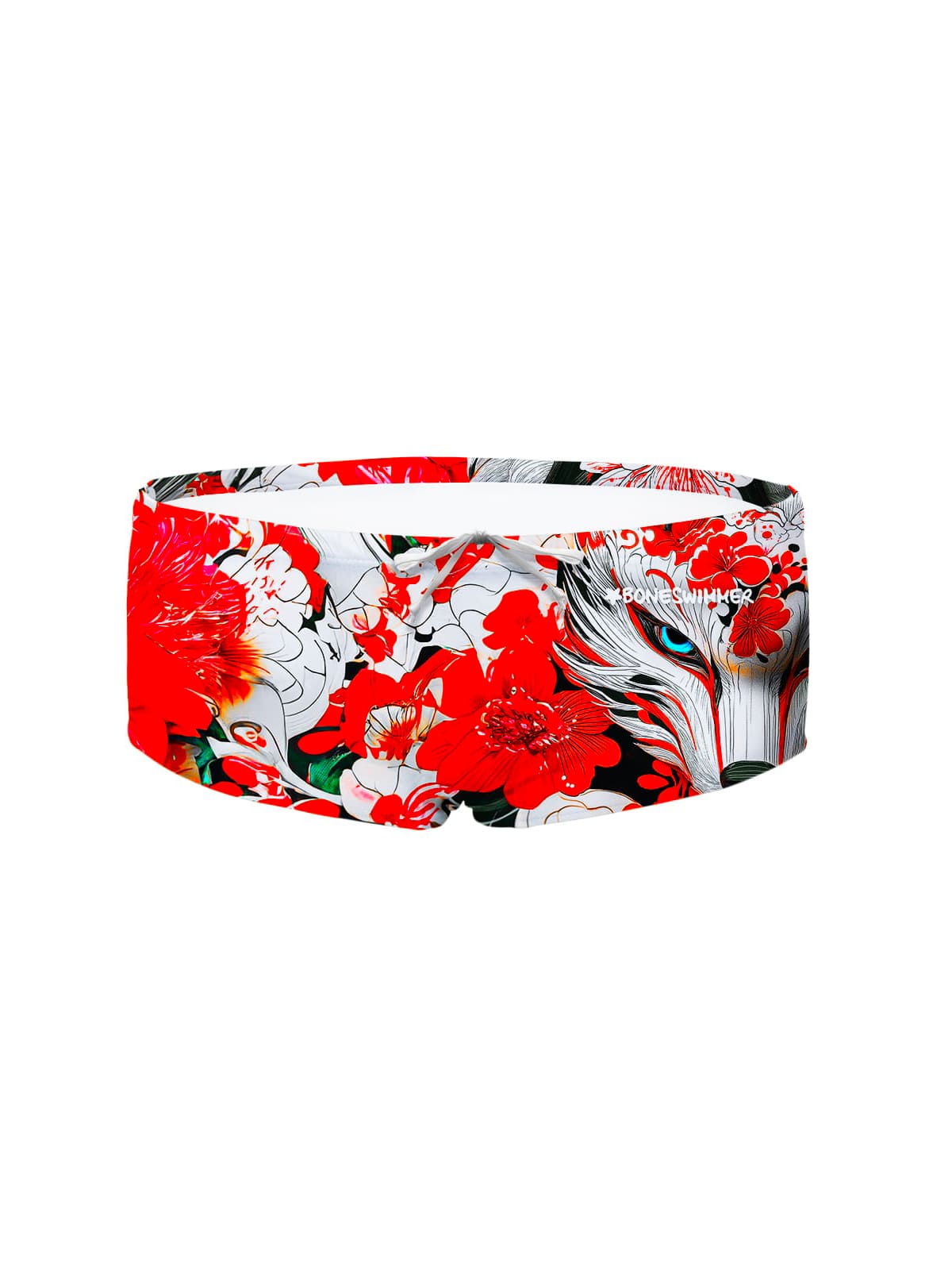 “Lo spirito della volpe.” Stile: una volpe Kitsune, figura mitologica giapponese, con occhi blu penetranti, circondata da fiori rossi su sfondo bianco e nero. Un design mistico e affascinante per chi vuole portare con sé la magia del Giappone anche in piscina. Dati tecnici:parigamba uomo con laccio in vita, altezza lato cm 15 circa; 100% […]