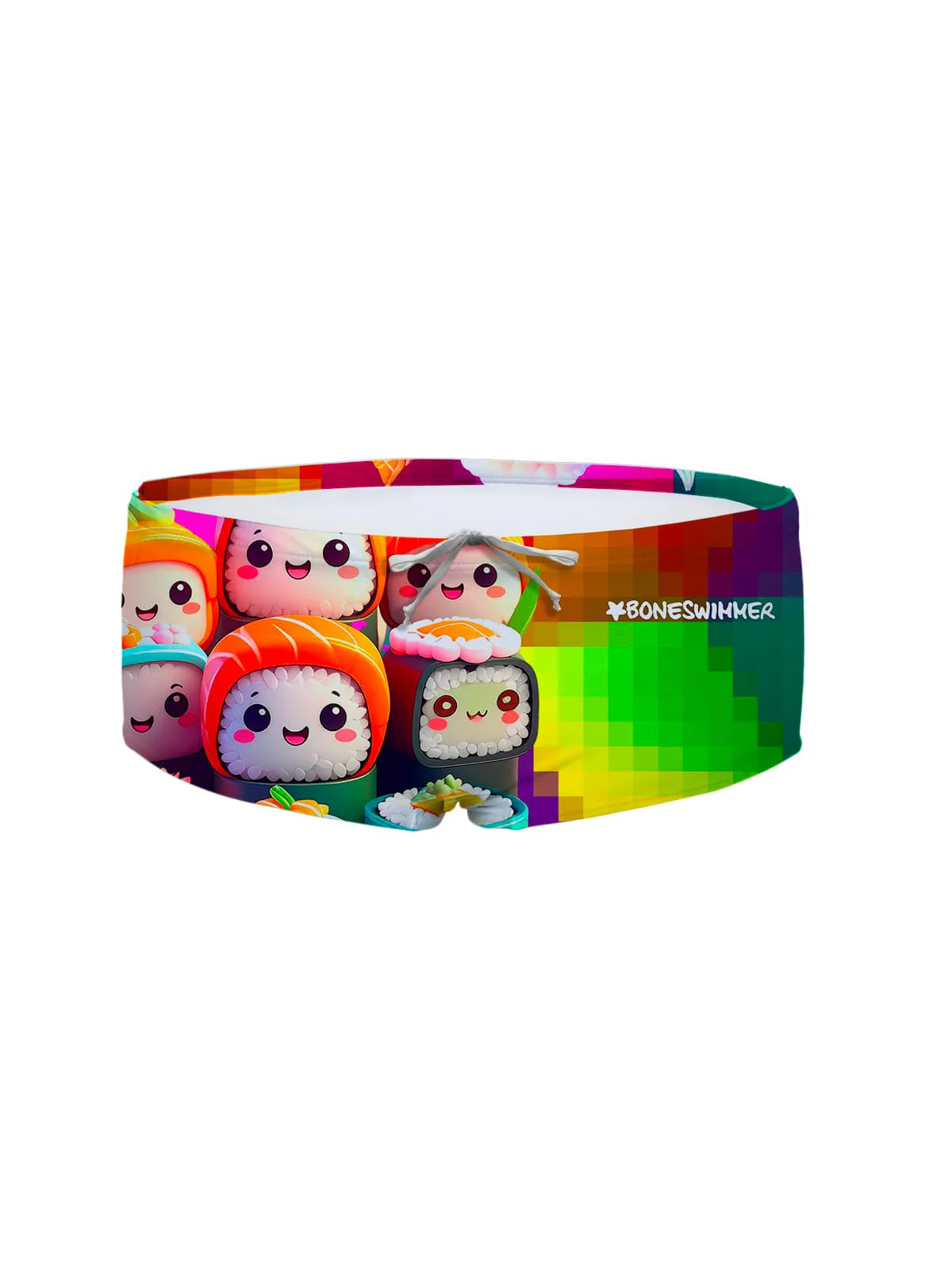 Costume parigamba da uomo per allenamento, modello Ucla. Stampa “Sushi”: un design ironico e colorato che porta un tocco di leggerezza in vasca, senza sacrificare la performance.
