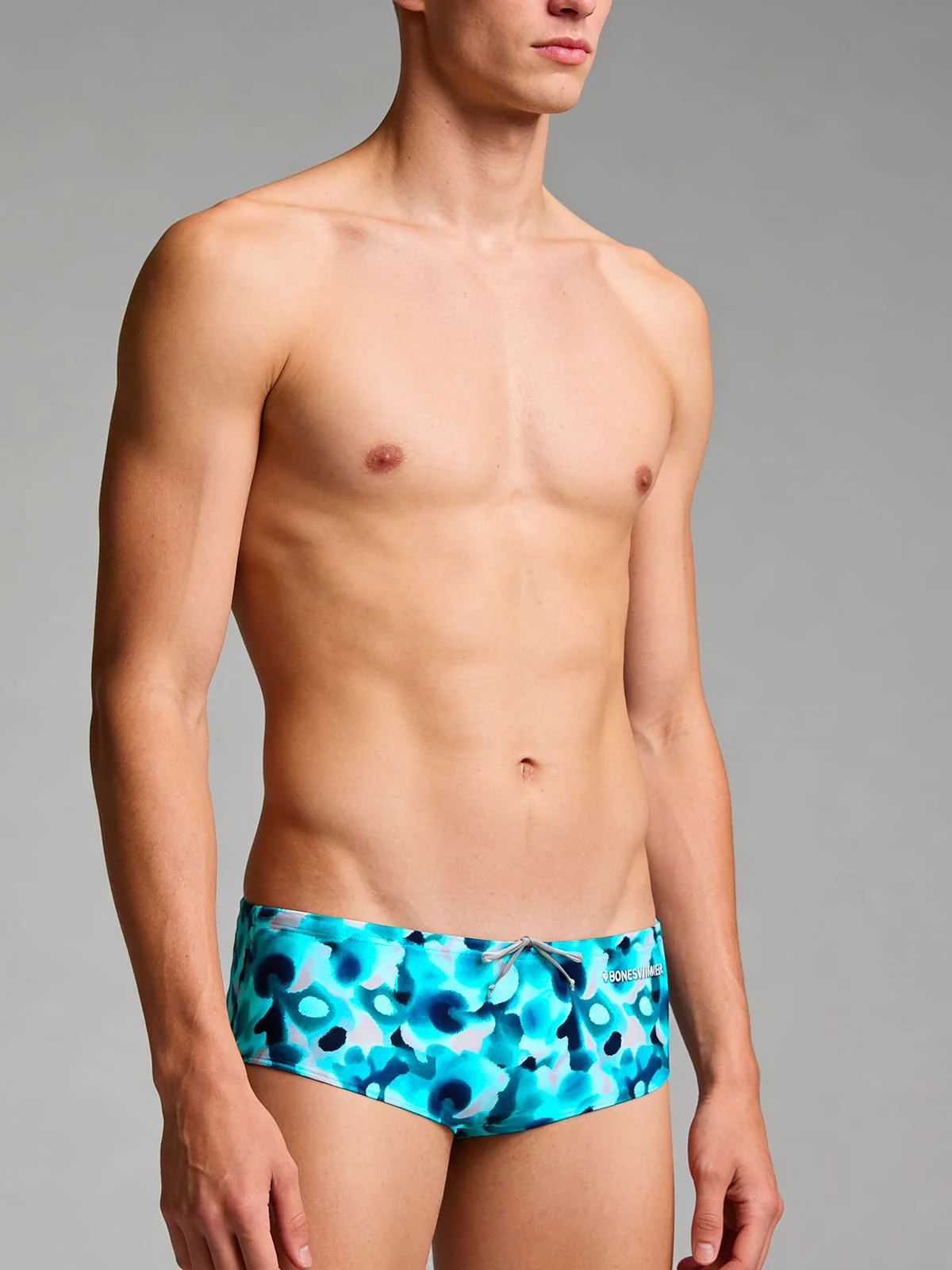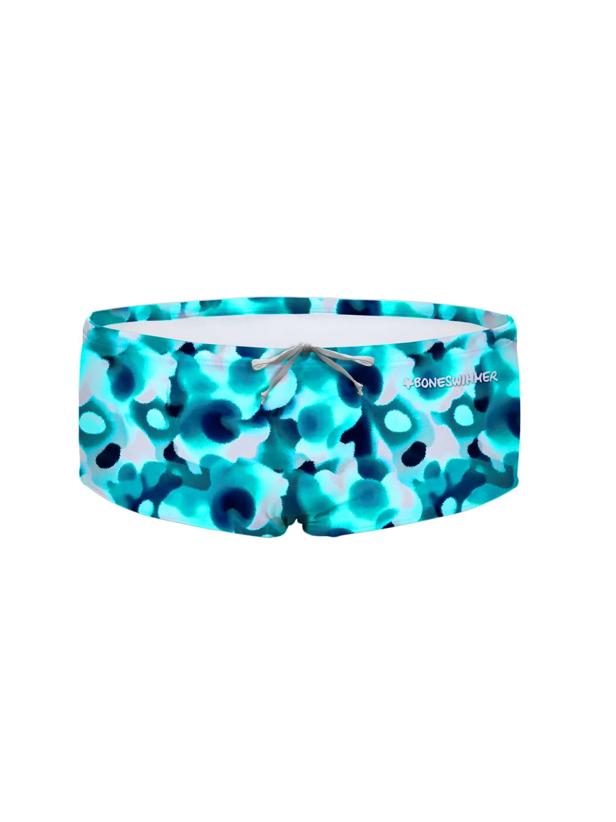 Un boxer a vita bassa da corsia dal taglio sportivo e fit aderente, progettato per garantire massima libertà di movimento e performance idrodinamiche durante gli allenamenti più intensi.
