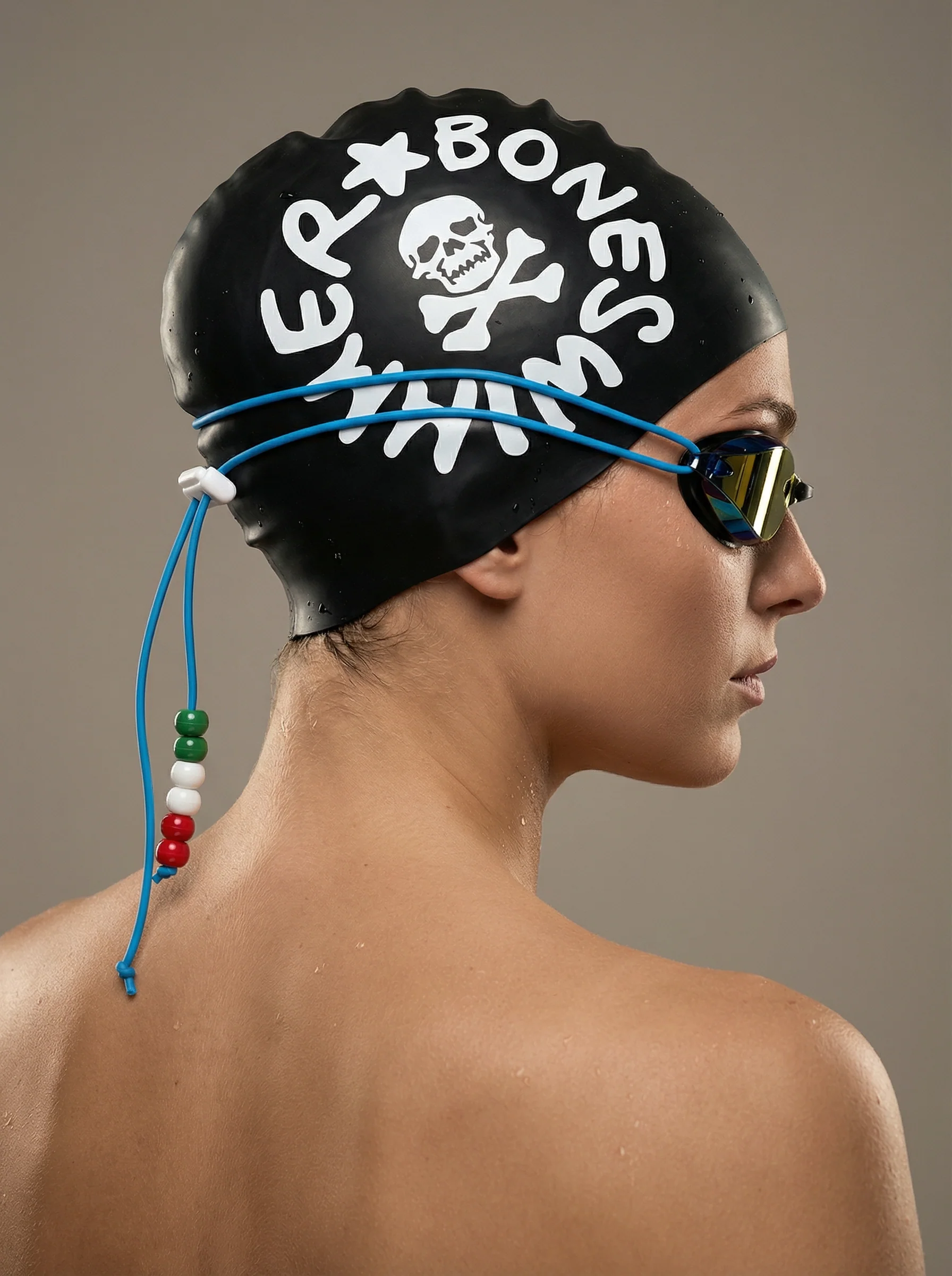 Queste perline tricolore scorrono sull’elastico degli occhialini e trasformano un gesto tecnico in un segno riconoscibile: pulito, grafico, italiano.