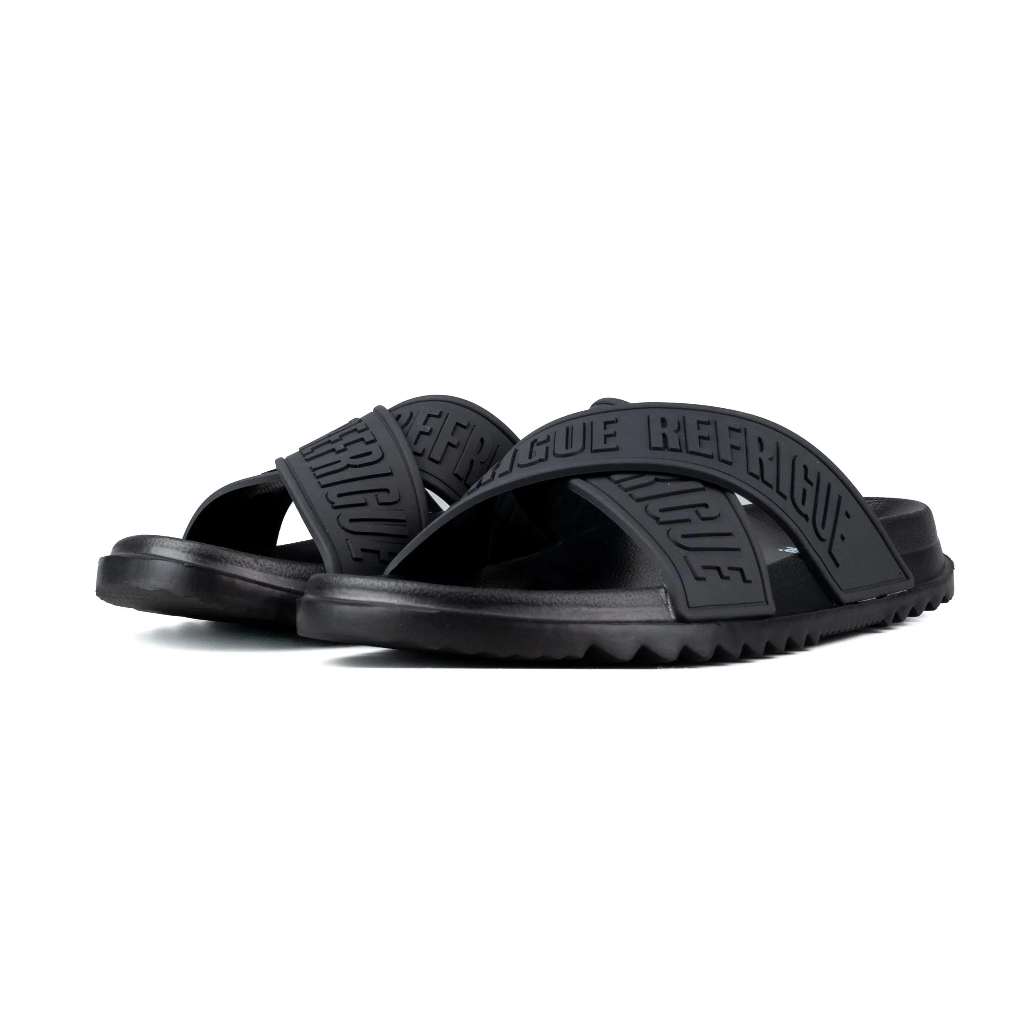 Ciabatte Refrigue Colore Nero Fascie incrociate Logo su fascia