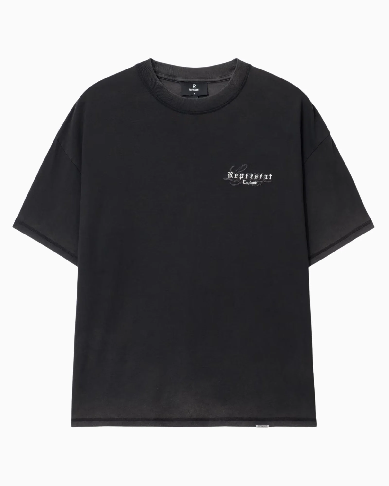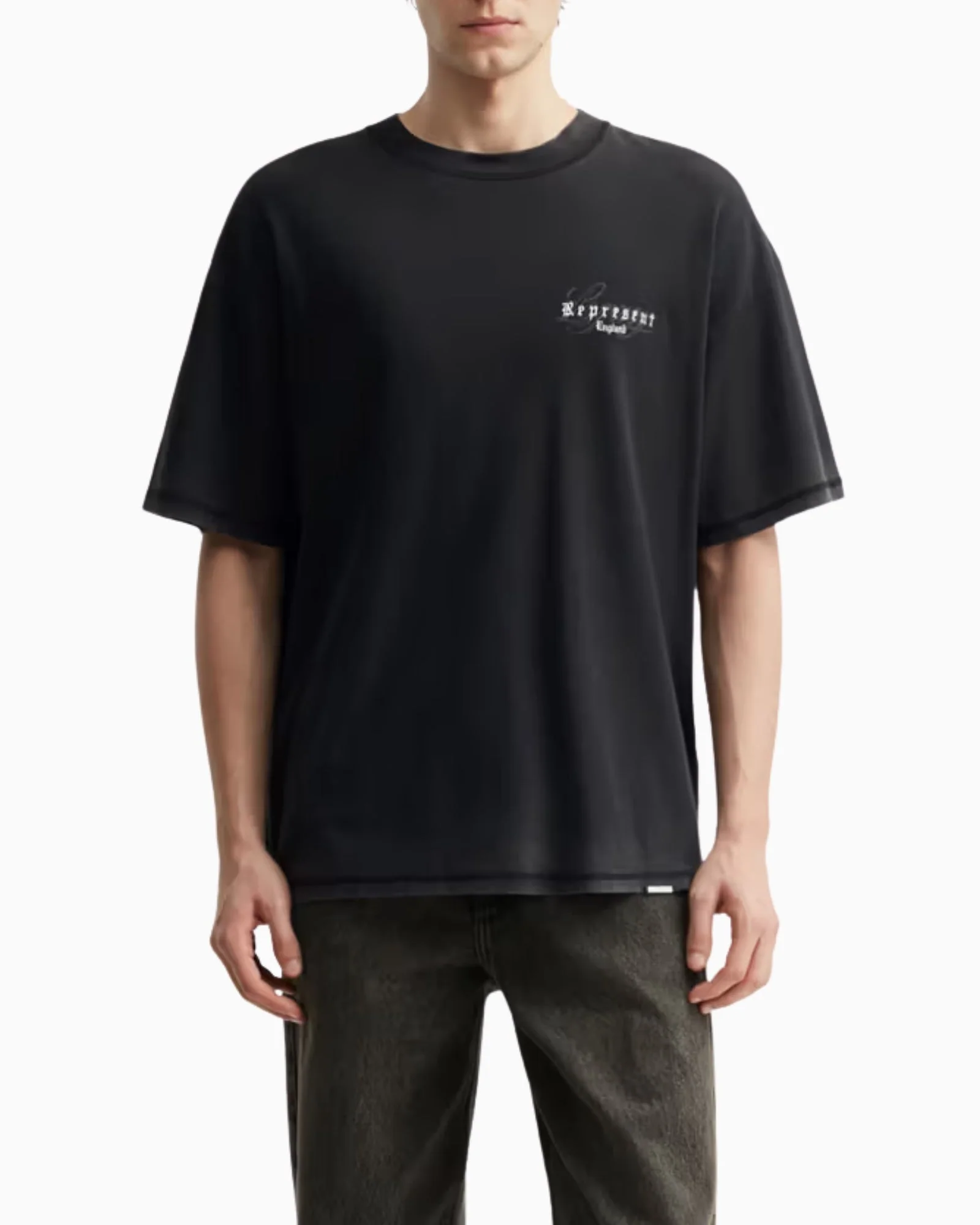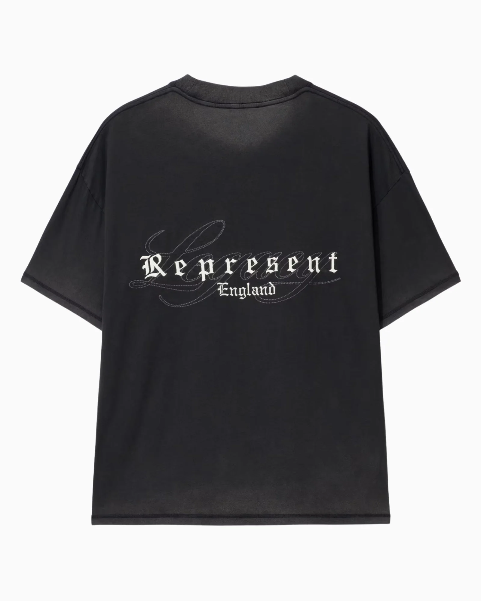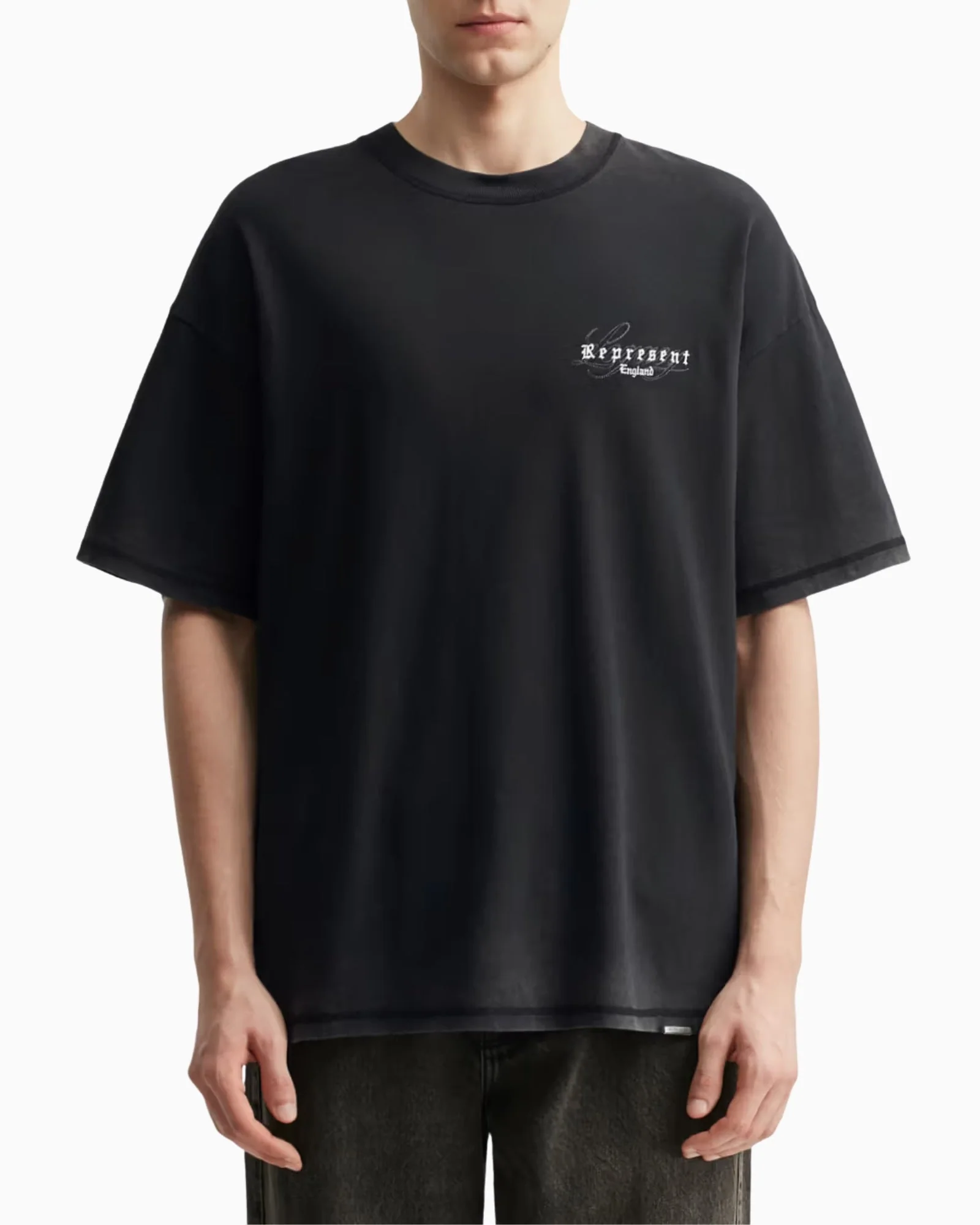 REPRESENTLegacy Overprint T-Shirt Descrizione: Maglietta con stampa sovrapposta Represent LegacyRealizzato in cotone di medio peso da 220 g/m²Sbiadito lavatoVestibilità oversizeGirocollo a costeManica cortaRappresentano i ricami dell’Inghilterra sul petto e sulla schienaLogo della barra di metalloColore: Nero vintageMateriale: 100% cotone Codice stile prodotto: MLM100178/06