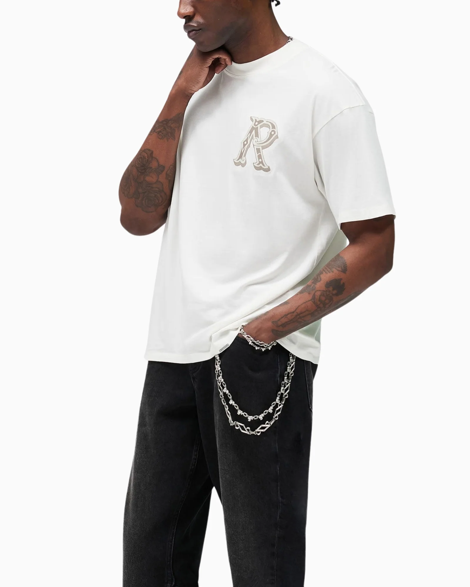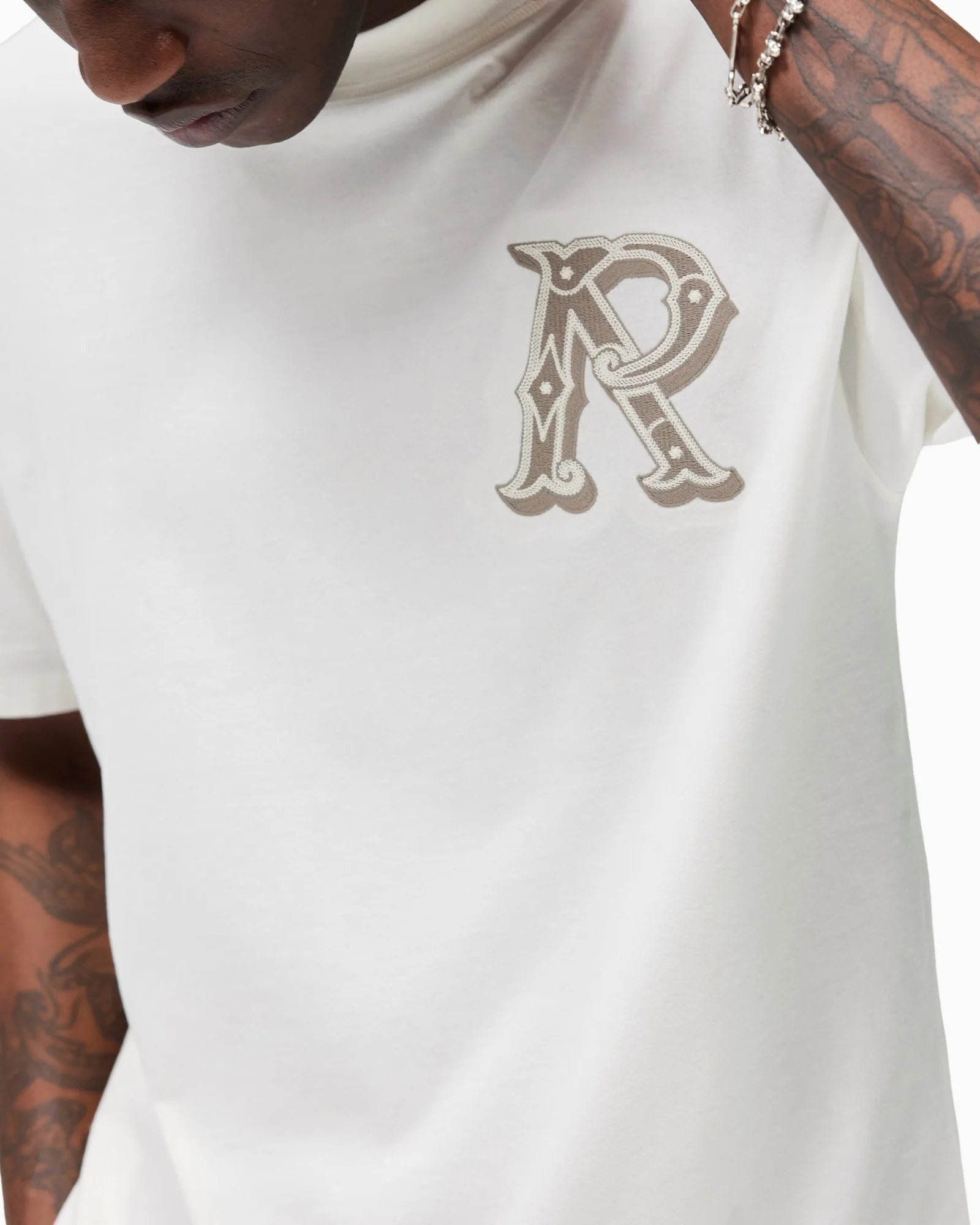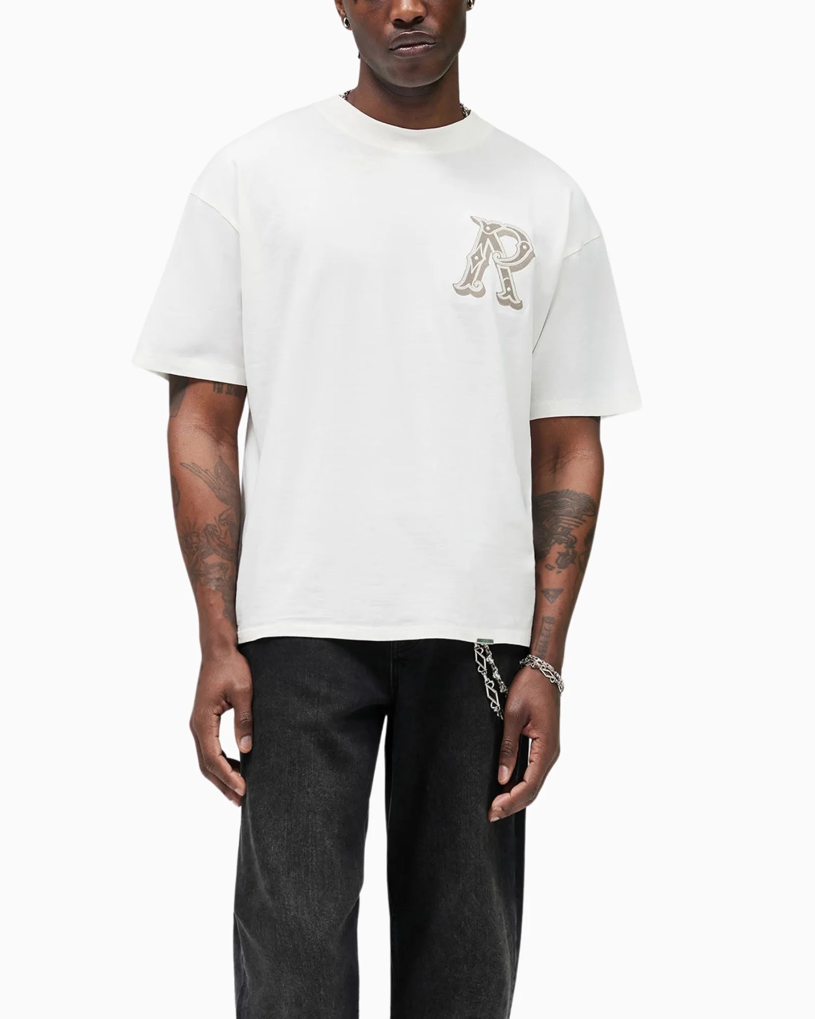 T-shirt Western Initial in Flat White, una silhouette oversize pulita realizzata in morbido jersey di cotone