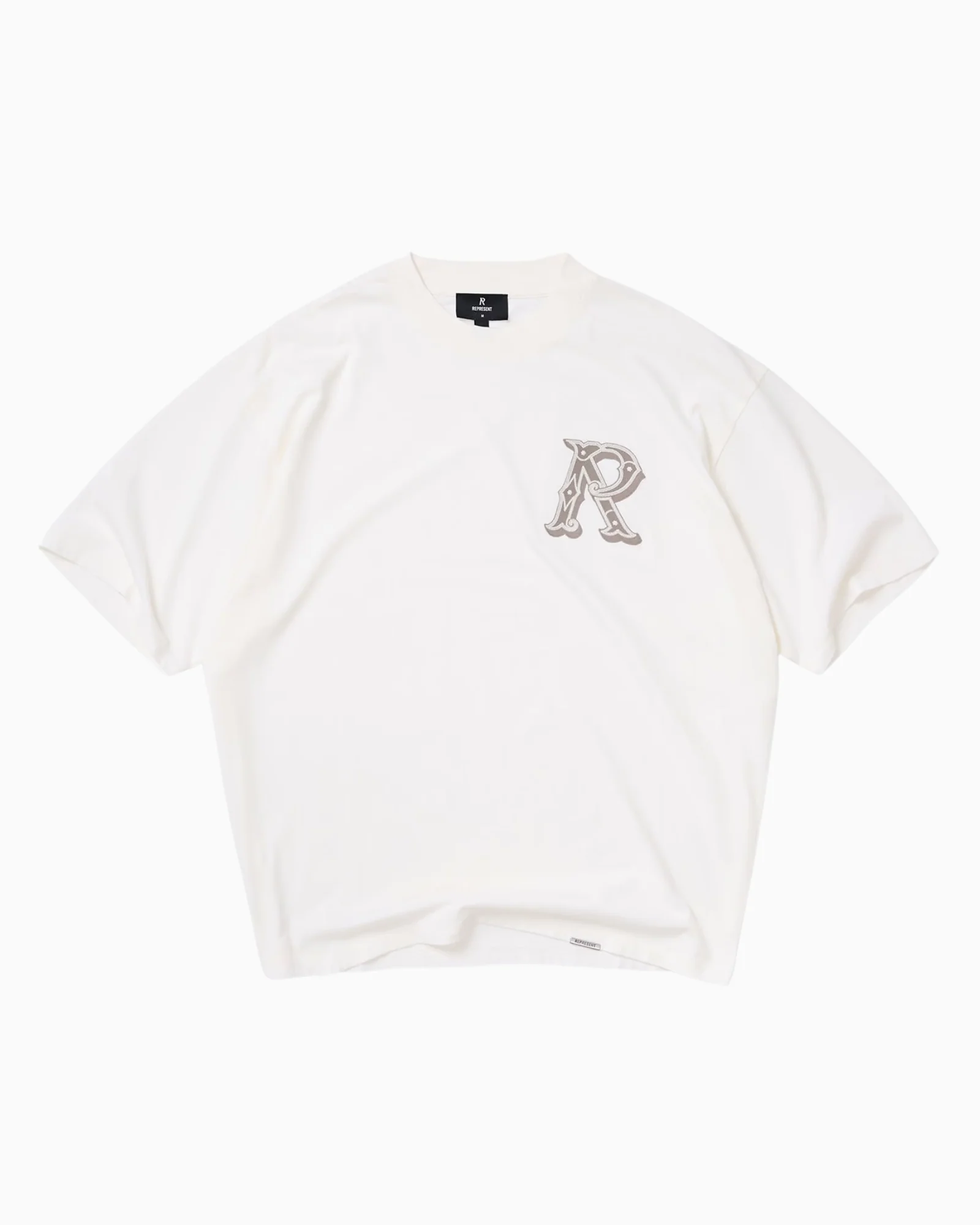 La colorazione neutra Flat White conferisce versatilità al look, pur mantenendo la forte identità Represent.