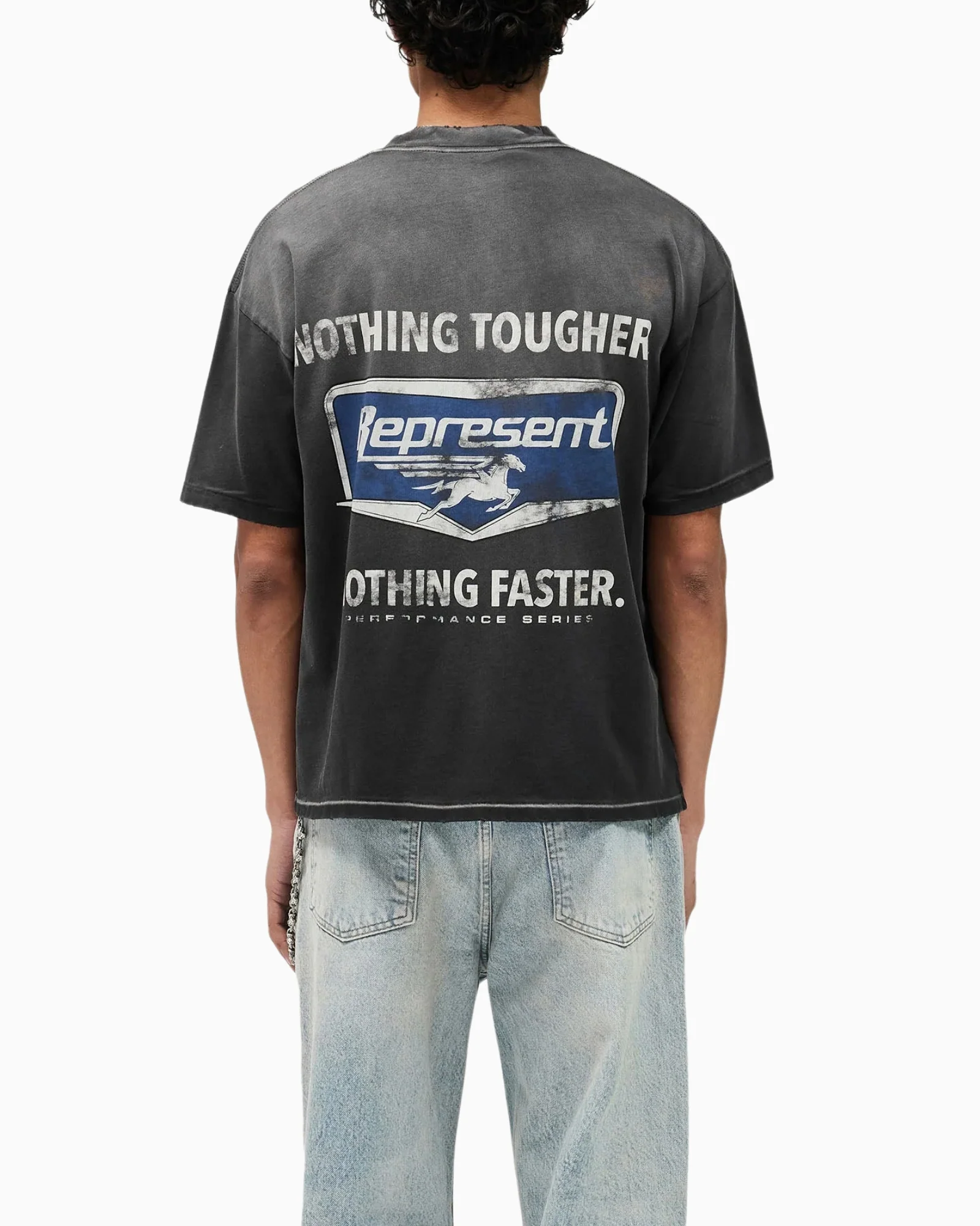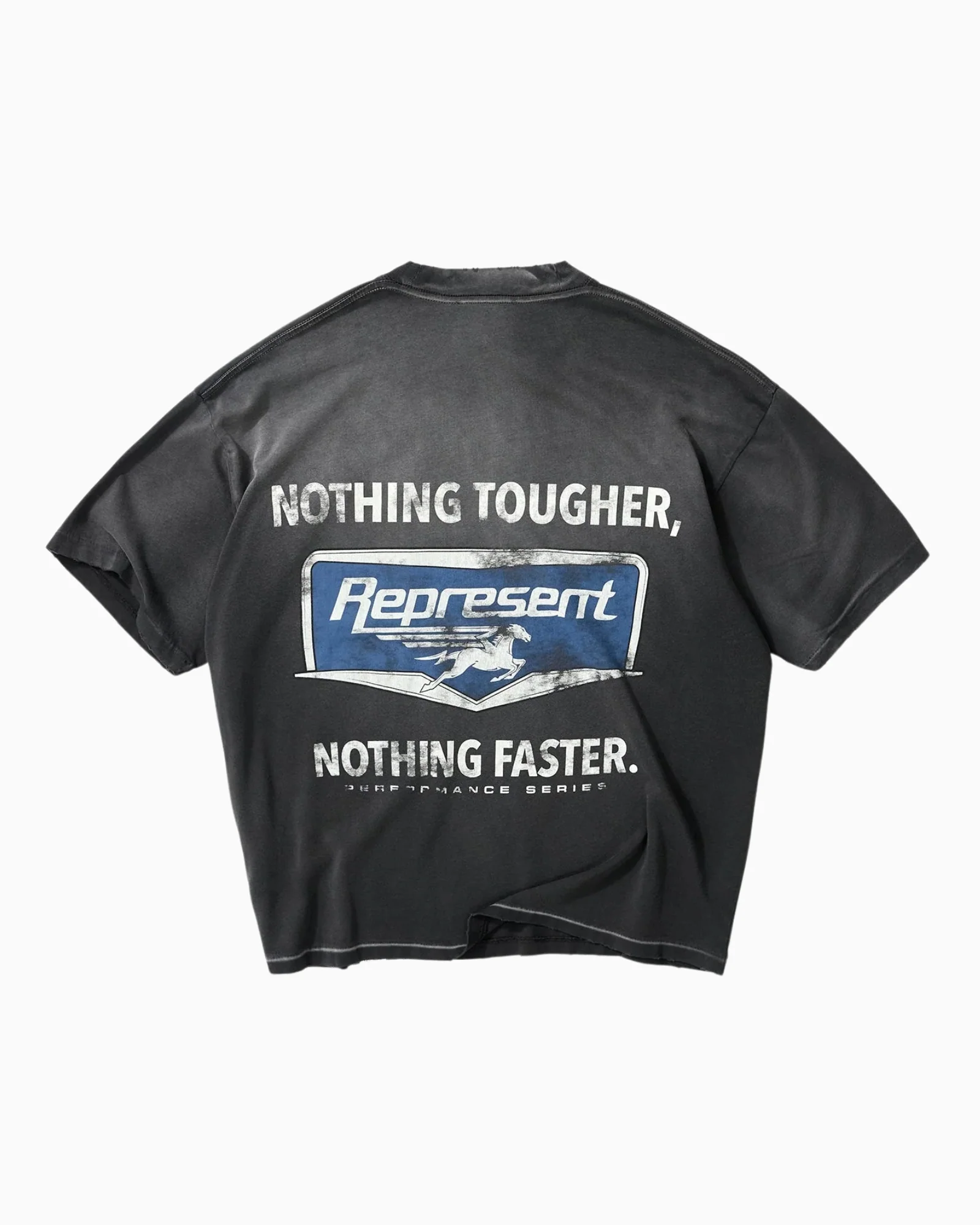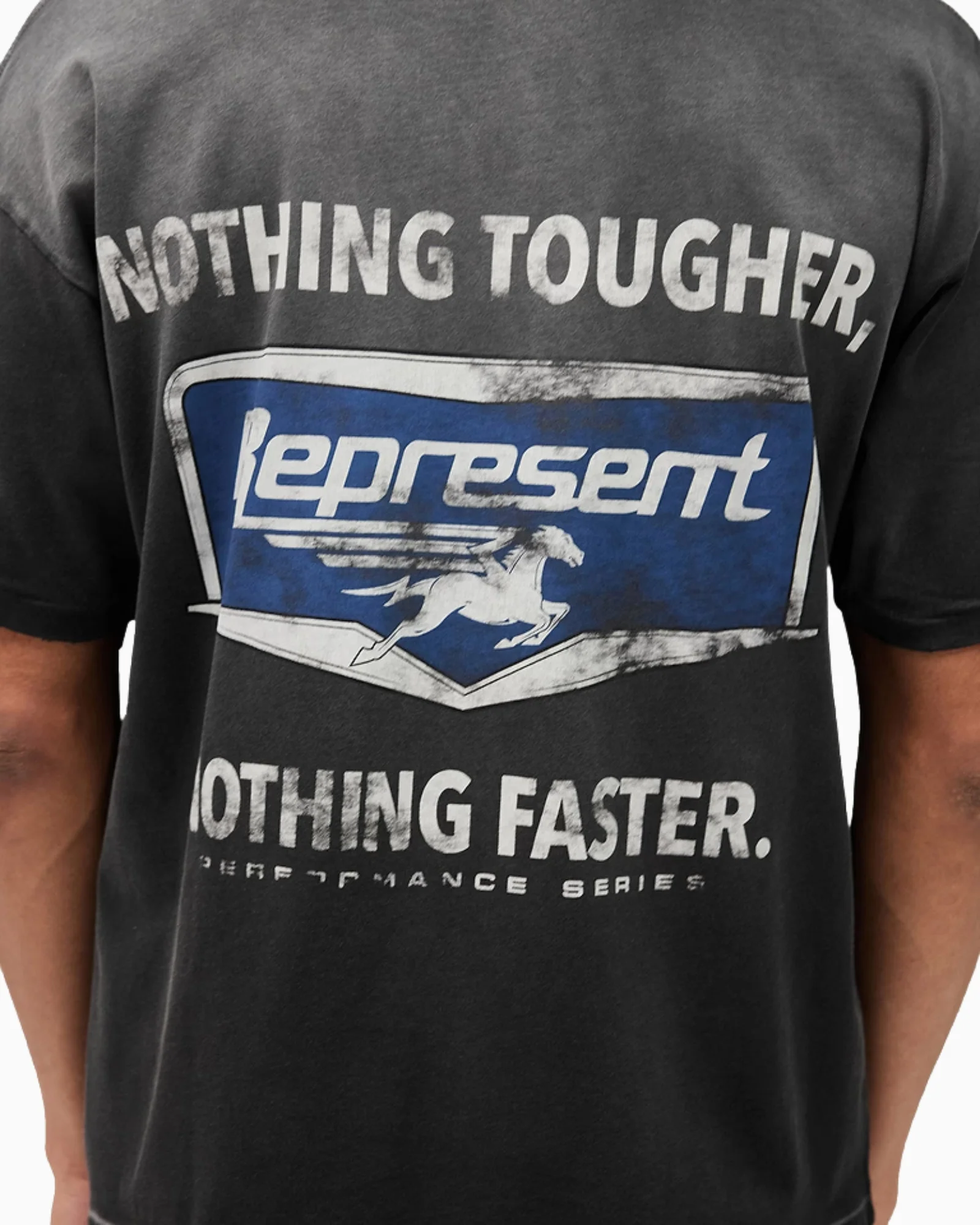 T-shirt Nothing Faster in nero macchiato, una silhouette oversize standard con una lunghezza leggermente più corta,